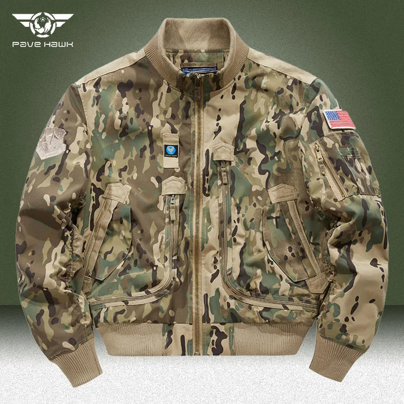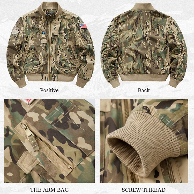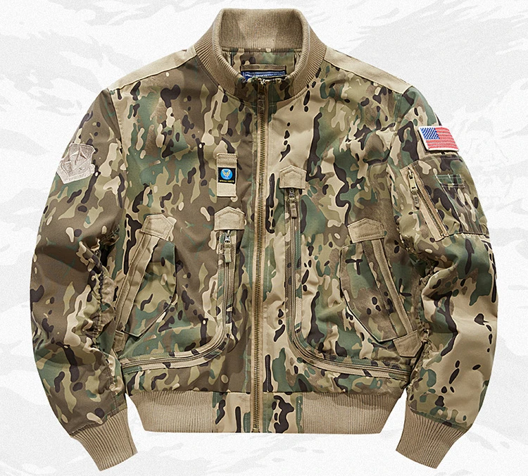 Chaqueta Bomber militar MA1 para hombre, abrigos tácticos sueltos, impermeables, múltiples bolsillos, cuello levantado, primavera y otoño