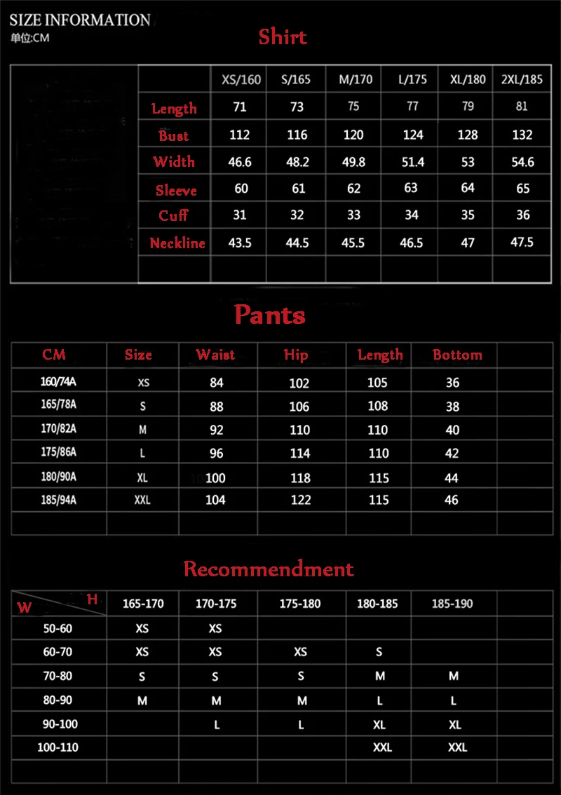 Tamaño:S / M / L / XL / XXL