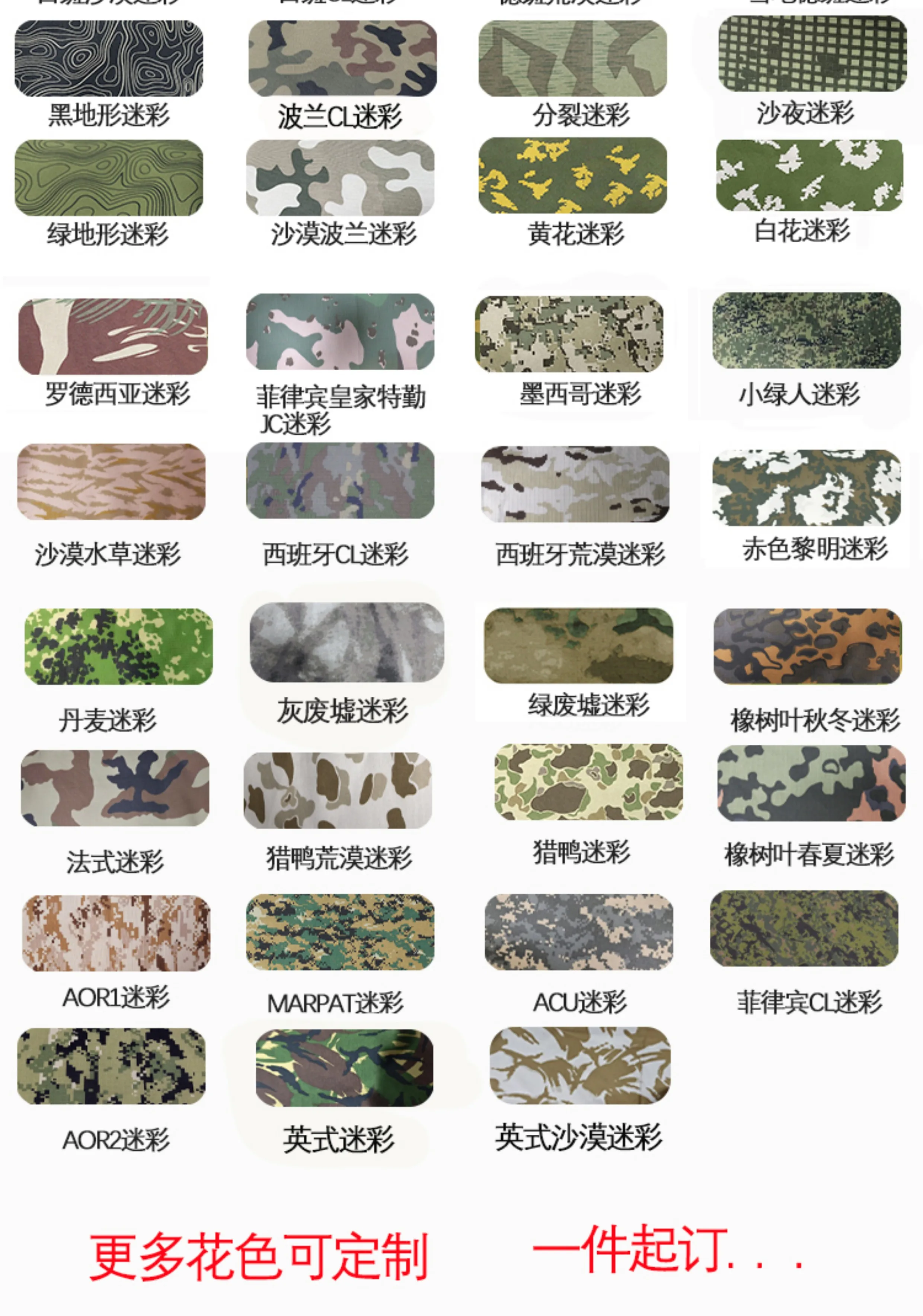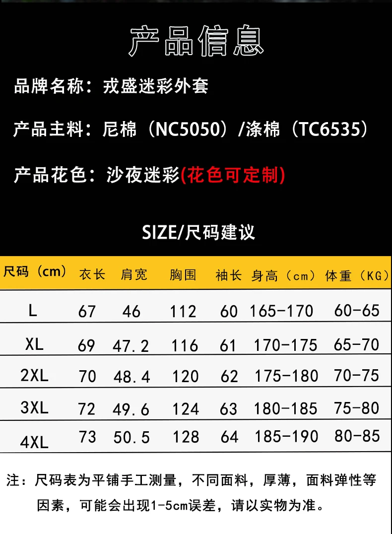 Materiales principales del producto: algodón de nylon (NC5050)/algodón de poliéster (TC6535) Paquete: 1 capa Tamaño pequeño, recomendado para 1 talla.