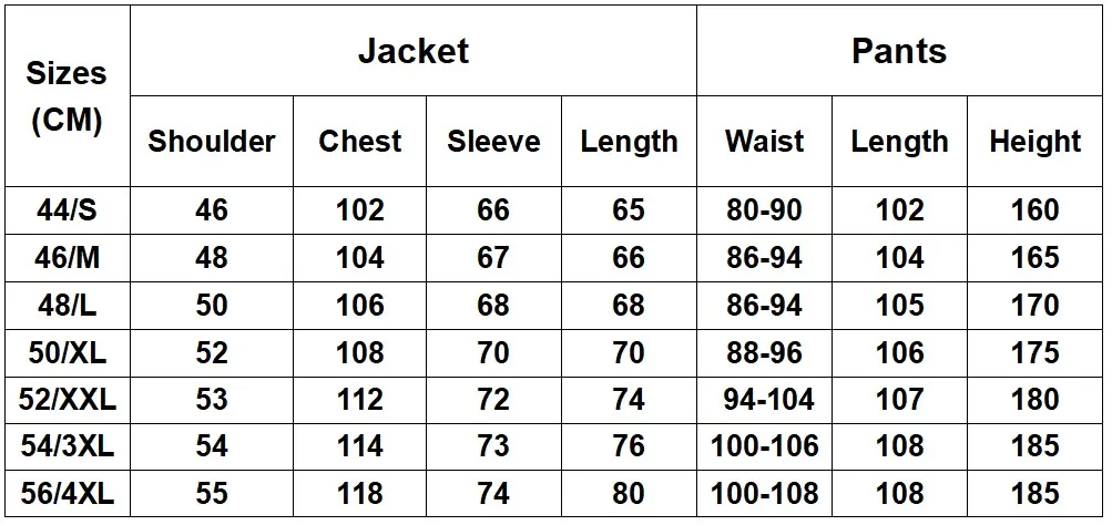Tenga en cuenta: debido a las diferentes herramientas manuales, permita un error de 1-3cm, si necesita diferentes tamaños de pantalones y camisetas, simplemente déjenos un mensaje.