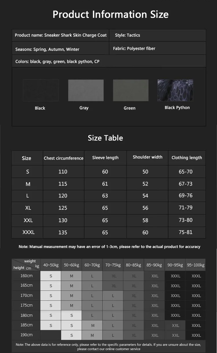 Nombre del producto: Trajes tácticos de piel de tiburón (chaqueta + pantalones)
