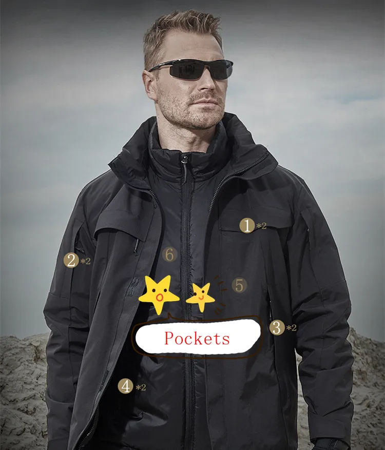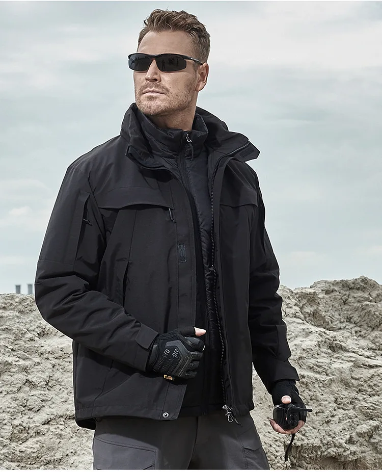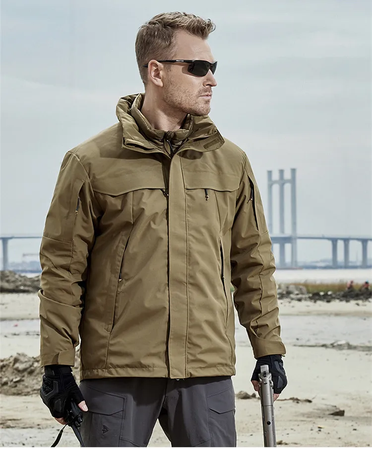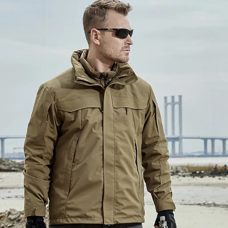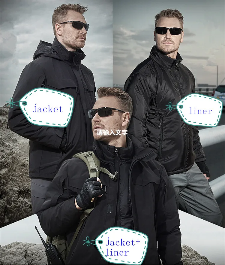 Chaqueta cortavientos 3 en 1 para hombre, abrigo táctico desmontable grueso, resistente al viento, para escalada al aire libre, senderismo y entrenamiento, talla grande