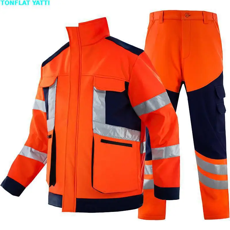 Chaqueta destacada para hombre, conjunto de pantalones y seguridad para el trabajo, ropa de trabajo de alta visibilidad, ropa de lana de alta visibilidad para hombre, invierno y otoño