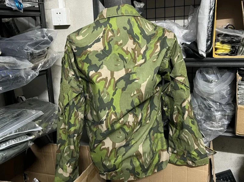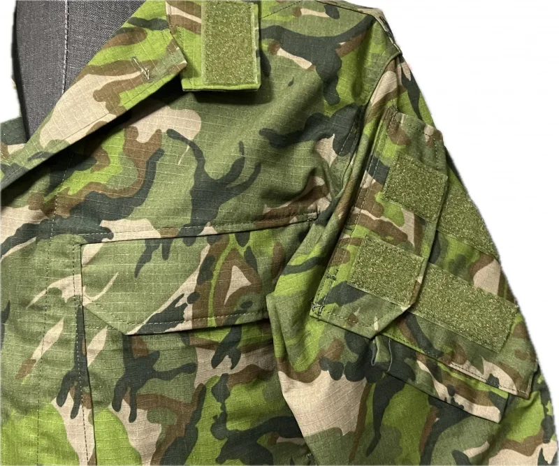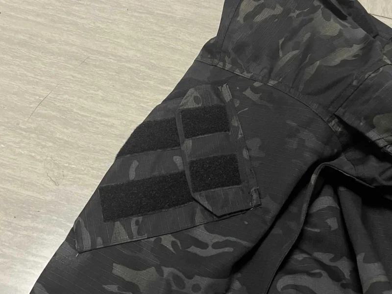 Material: material de verificación de mezcla de poliéster y algodón, 65 % poliéster, 35 % material de mezcla de algodón, cremallera YCC, adhesivo de gancho con nailon 100% puro.