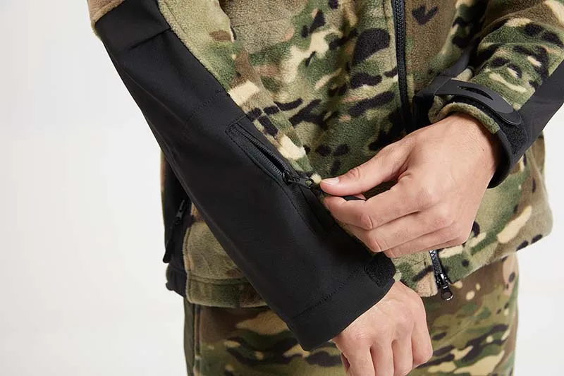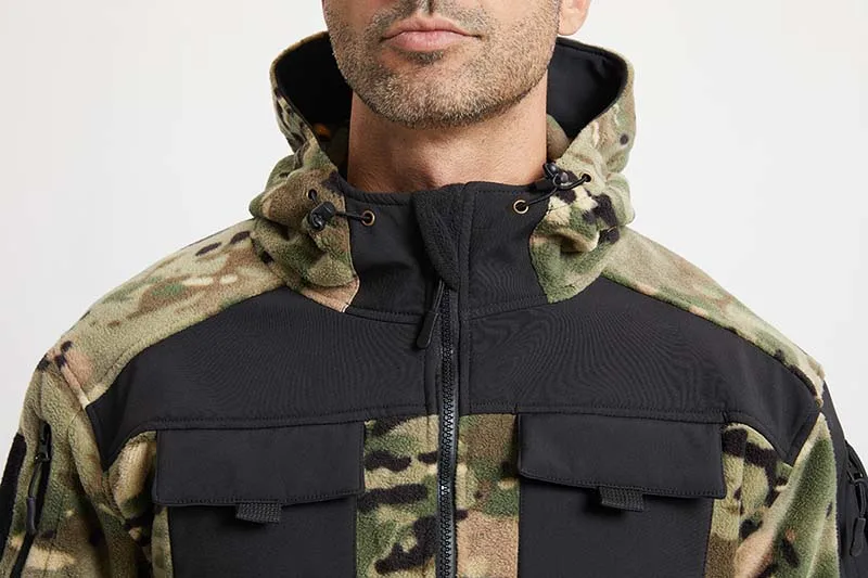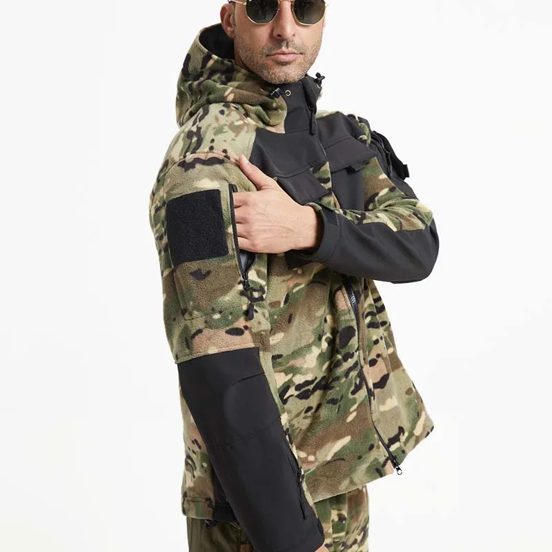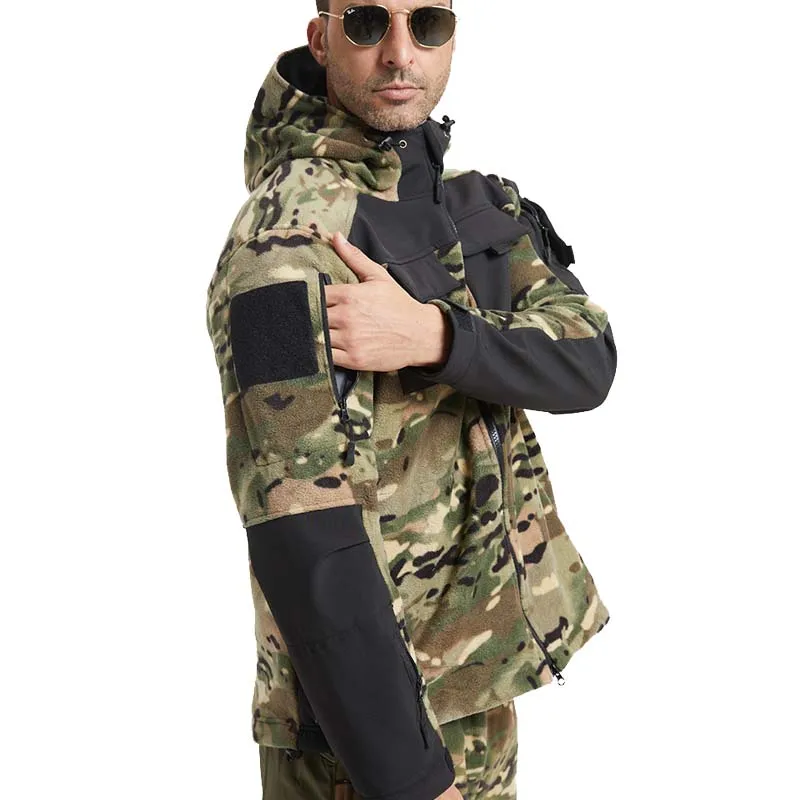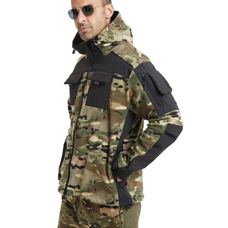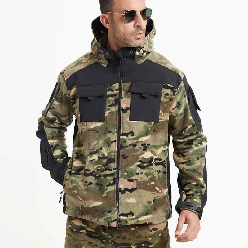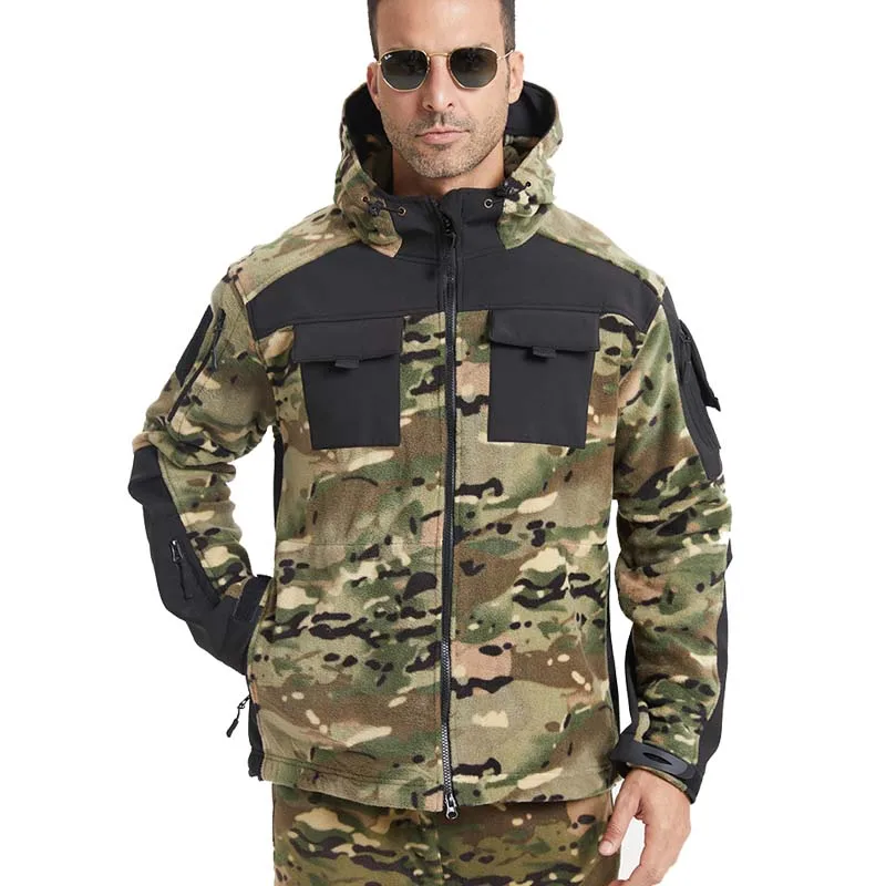 Chaqueta de forro polar para hombre, abrigo táctico de lana con múltiples bolsillos, cremallera completa, a prueba de viento, abrigo de trabajo cálido para exteriores