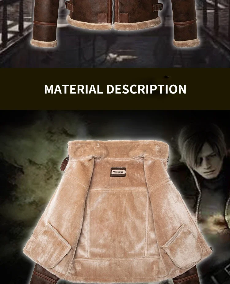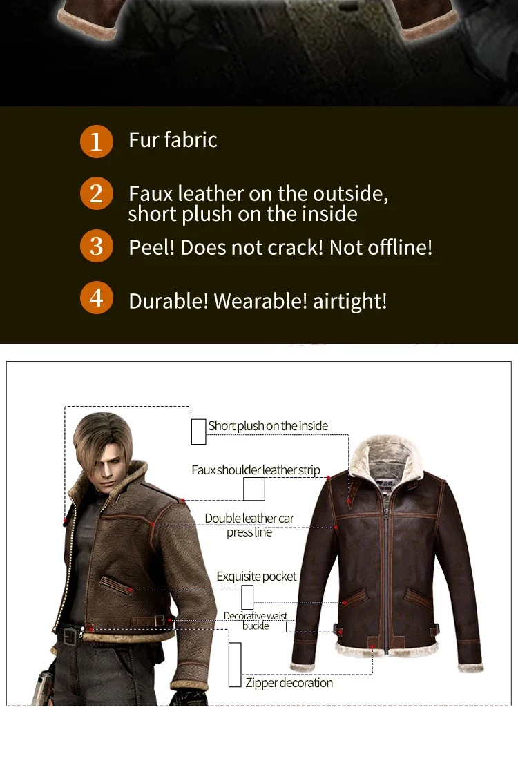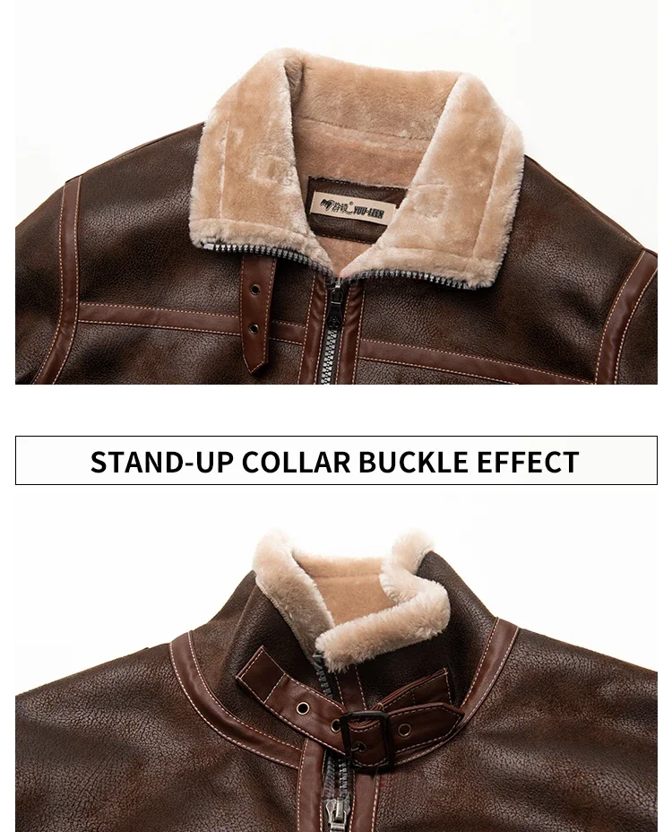 Chaqueta de cuero informal para hombre, piel sintética de invierno, cremallera sólida, de gama alta, gruesa, cálida, cortavientos, prendas de vestir exteriores, abrigo de cuero de una pieza de piel para Cosplay