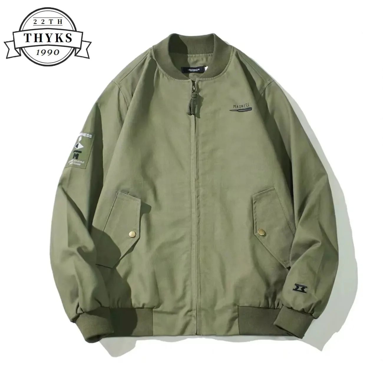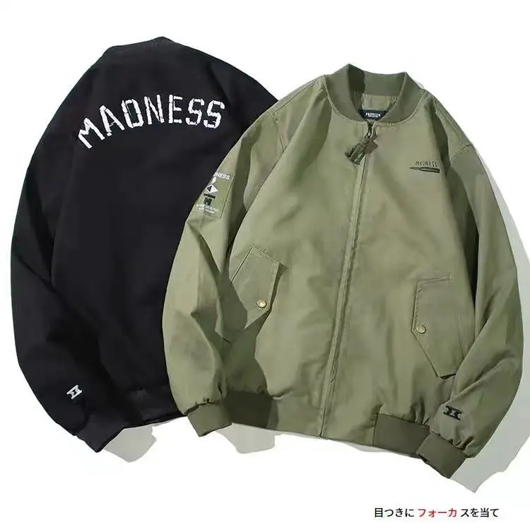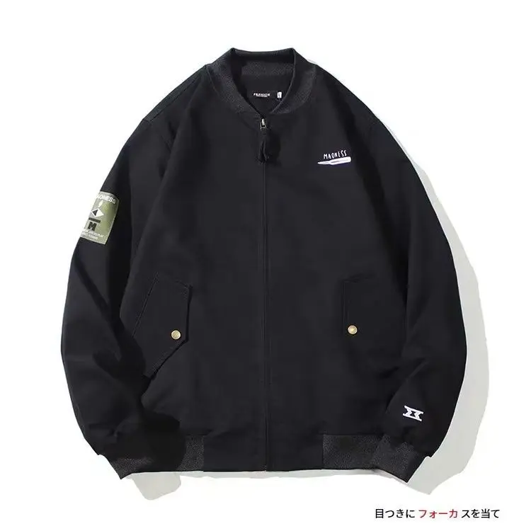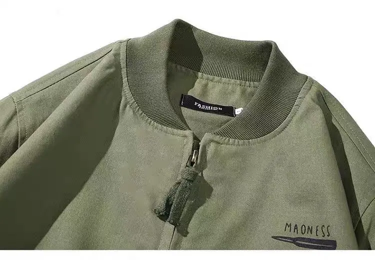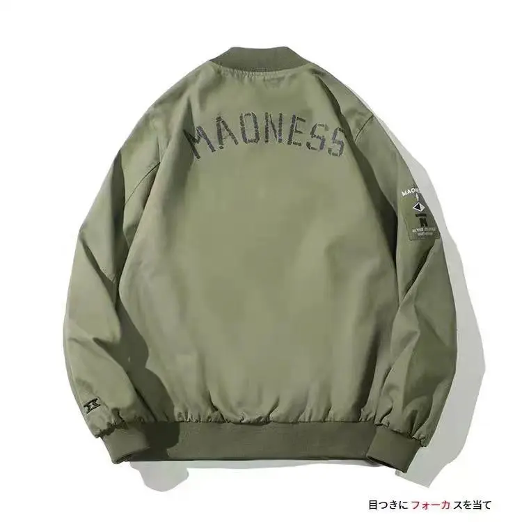 Chaqueta de la Fuerza Aérea para hombre, cortavientos informal sólido con estampado de letras, abrigo superior de béisbol suelto, chaquetas Bomber de tendencia de moda, primavera y otoño