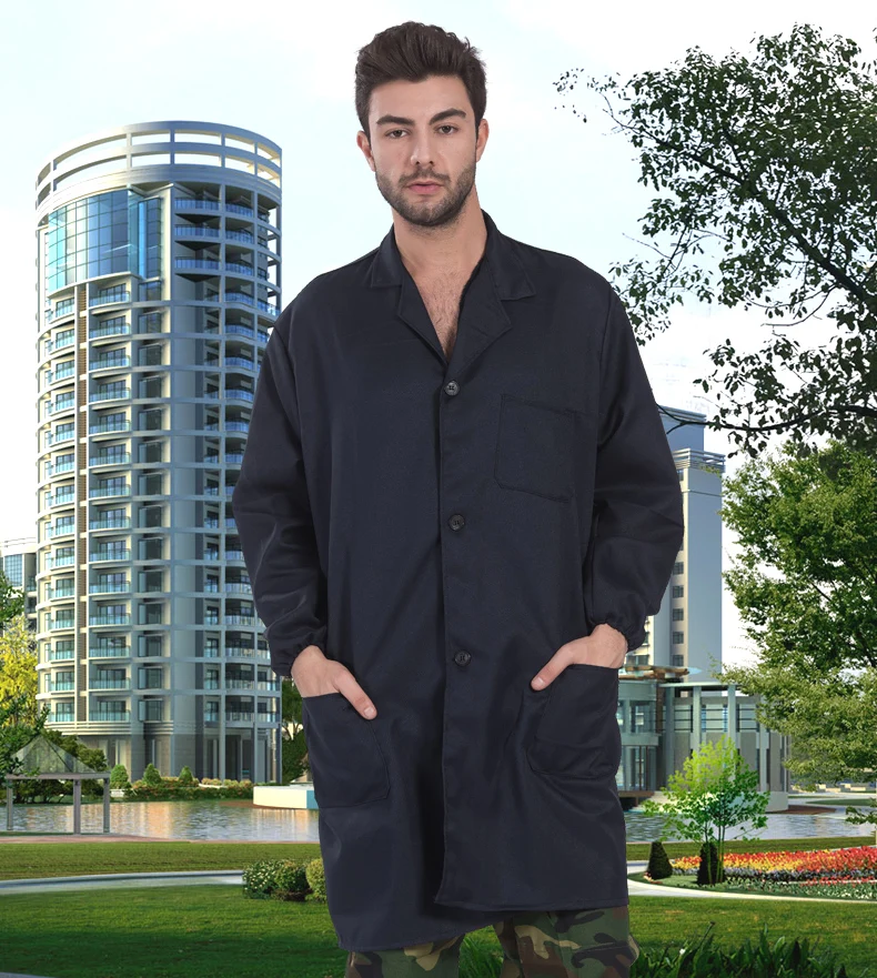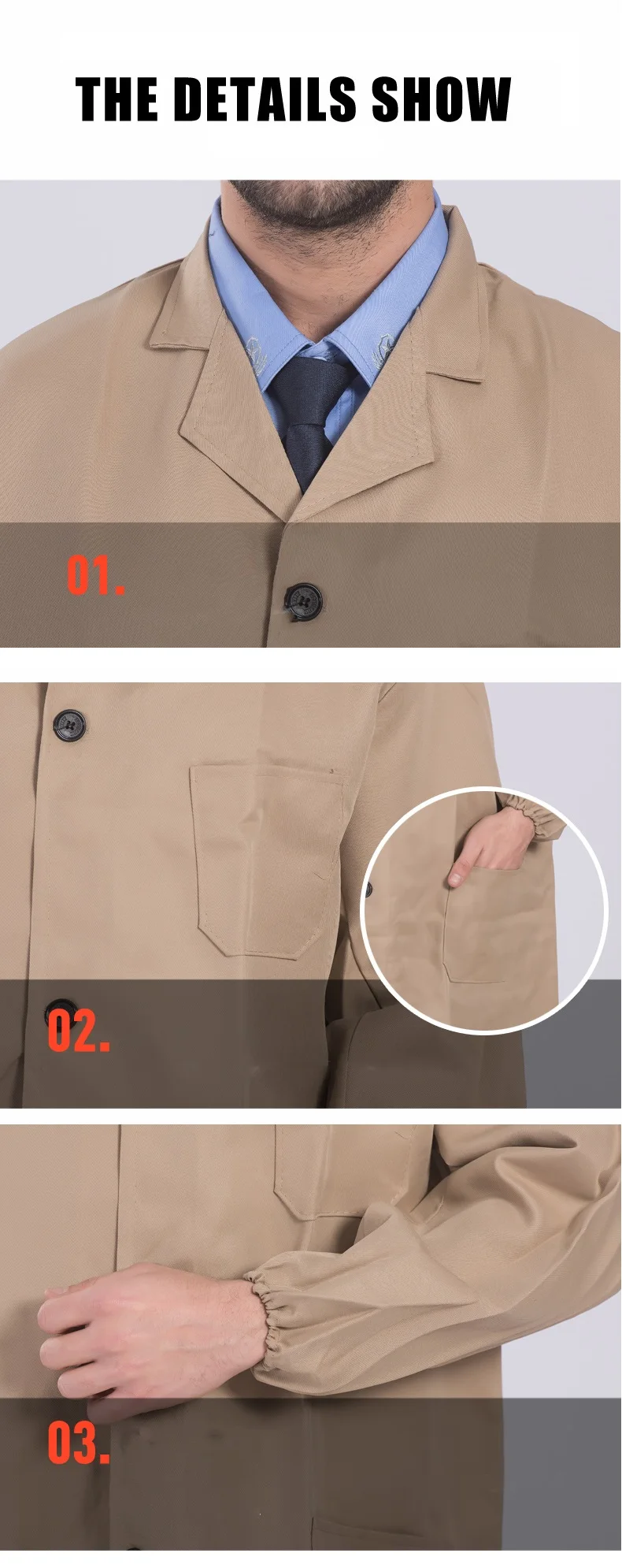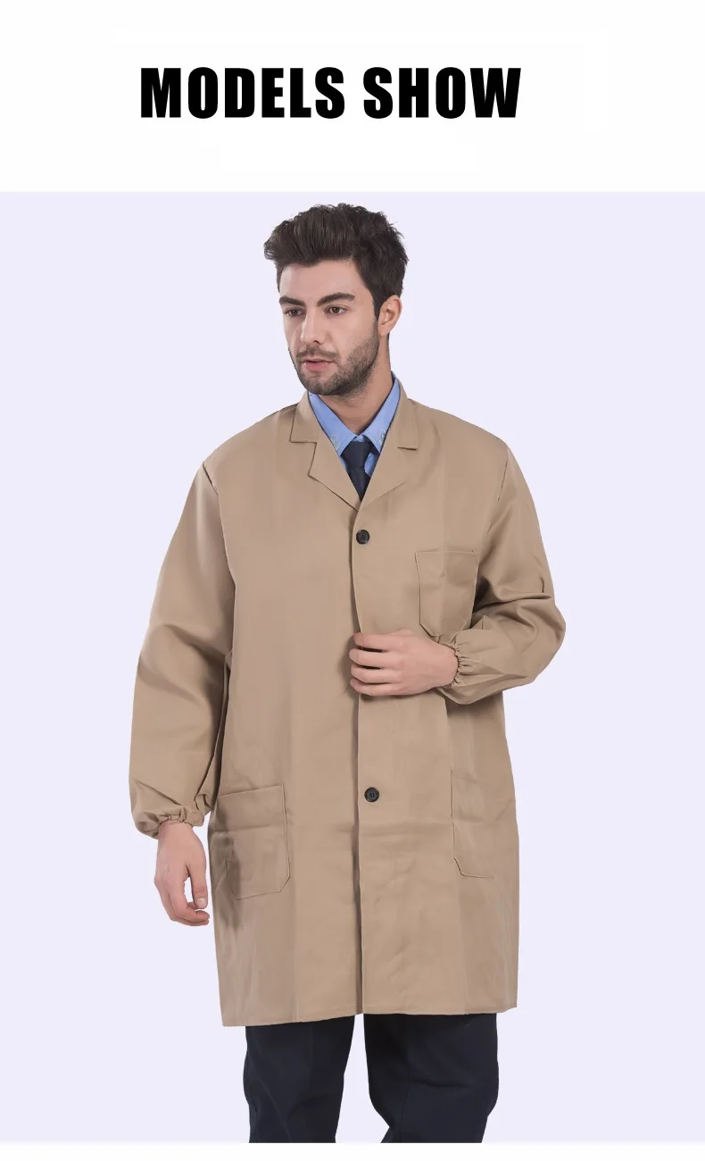Lab Jacket Work Clothes Uniform Safety Outerwear Pocket Mechanical Electric Chemistry Workshop Durable Coverall Uniforms Coats Lab Jacket Work Clothes Uniform Lab Wear Warehouse Porter Mechanical Electric Chemistry Workshop Durable Coverall Uniforms Coats