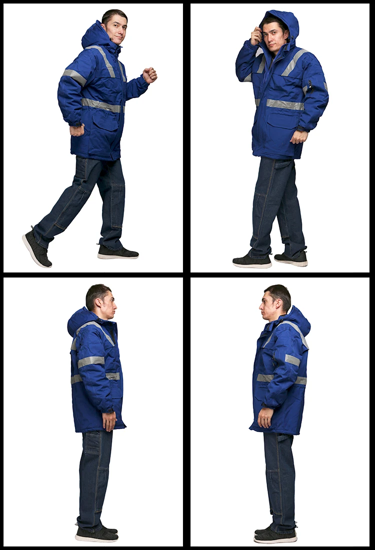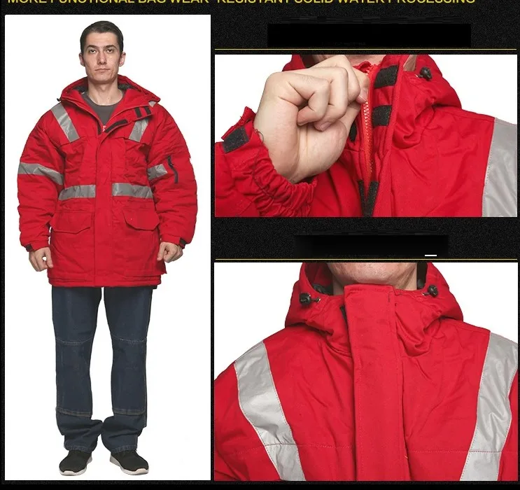 Resistant cotton overalls men's autumn and winter Plus Size men women overalls Siamese long-sleeved workshop dust-proof labor workwear Wind proof Winter warm thicken hooded long jacket coat cotton reflective stripe Siamese long-sleeved workshop dust-proof labor