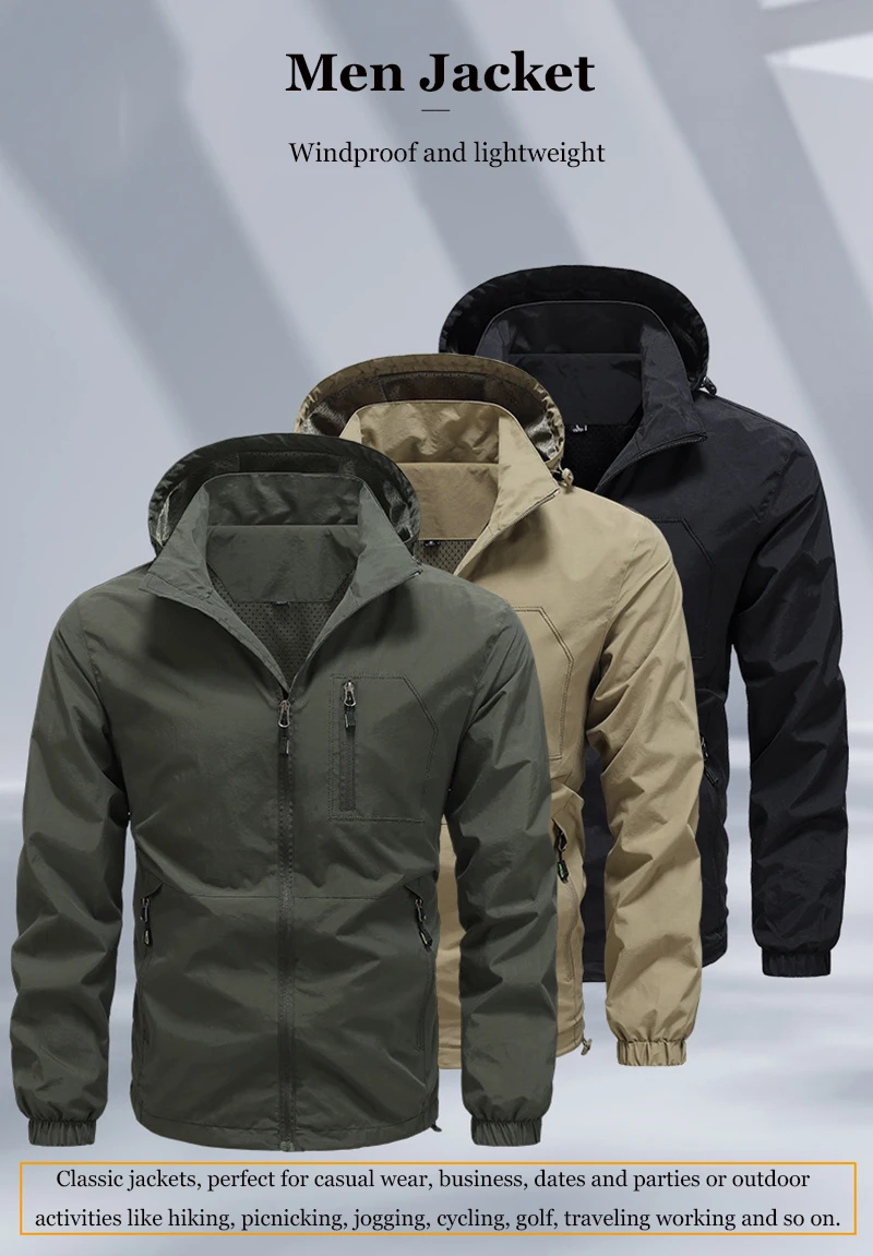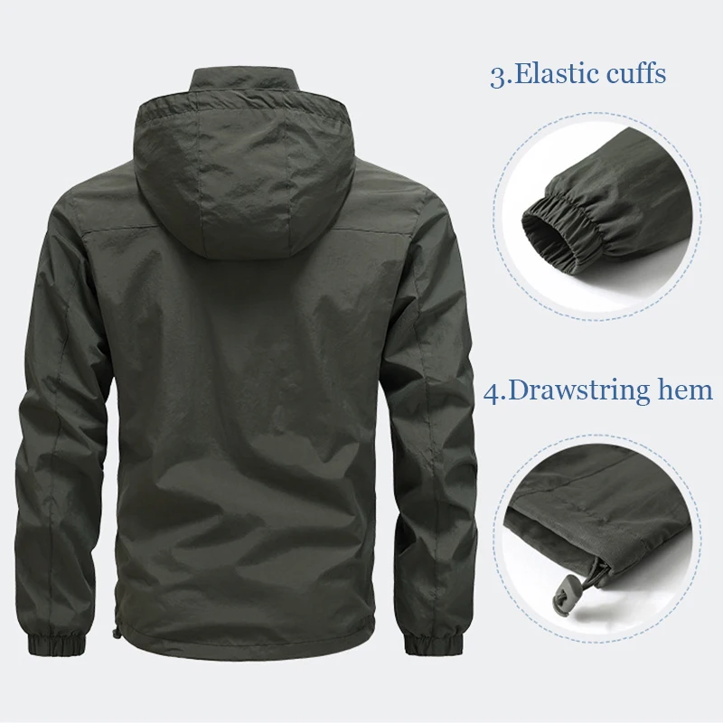 Chaqueta ligera informal a prueba de viento para hombre, abrigo de secado rápido con capucha para senderismo, Camping, Otoño, novedad