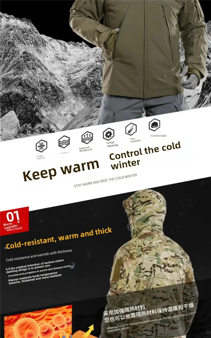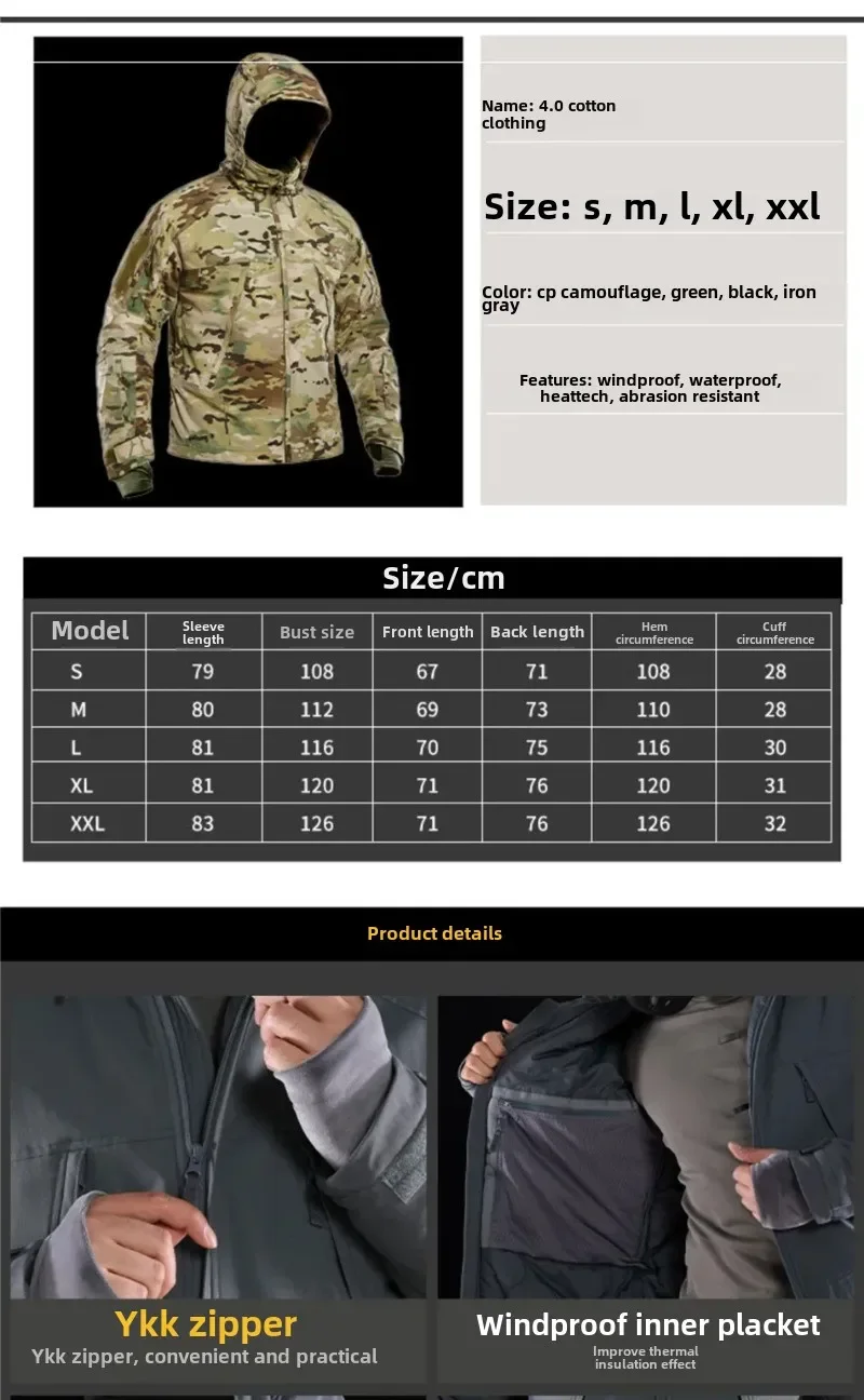 Gen 4,0 chaqueta táctica de algodón para deportes al aire libre de invierno, ropa cálida repelente al agua, Camping, senderismo, caza, pesca, abrigo de uso en frío