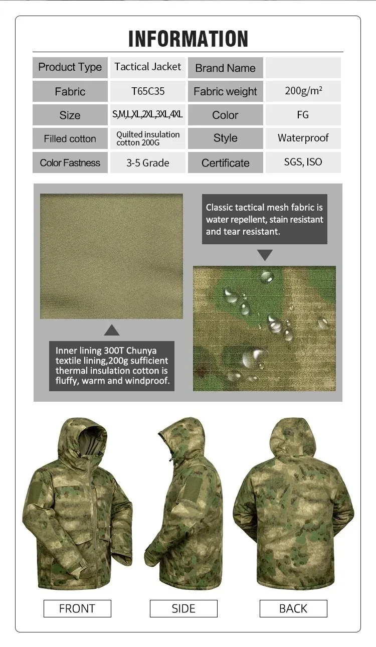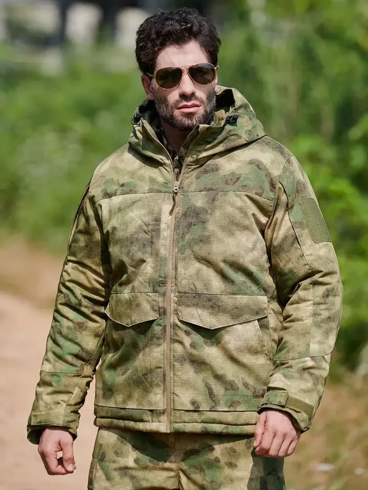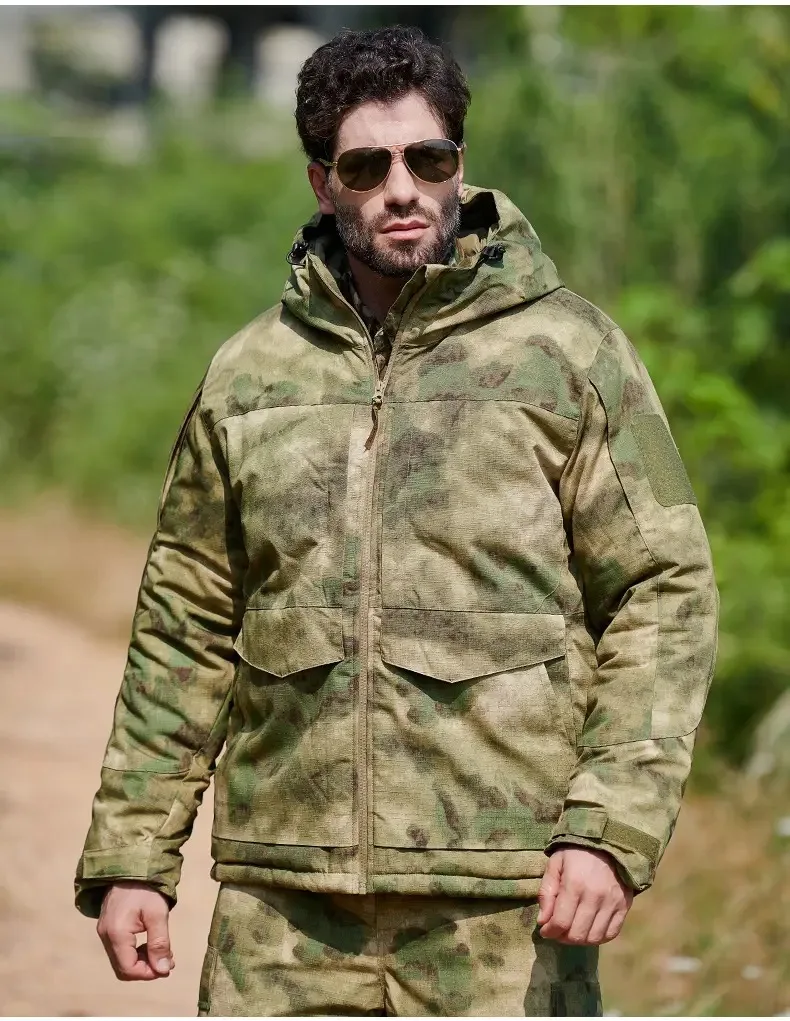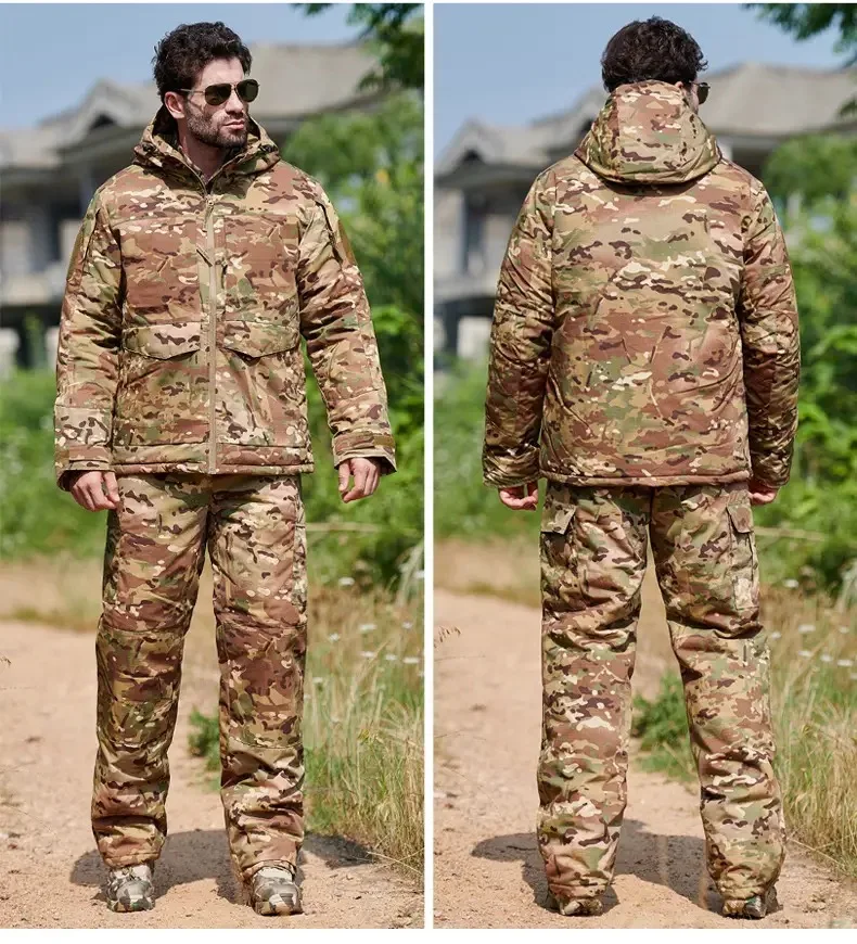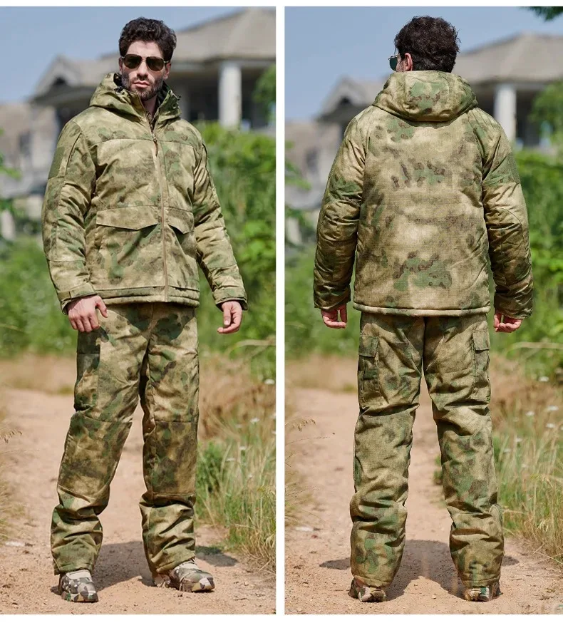 Chaqueta con pantalón para hombre, abrigo cálido de algodón para otoño, trajes de caza, uniforme deportivo para exteriores, conjuntos de talla grande