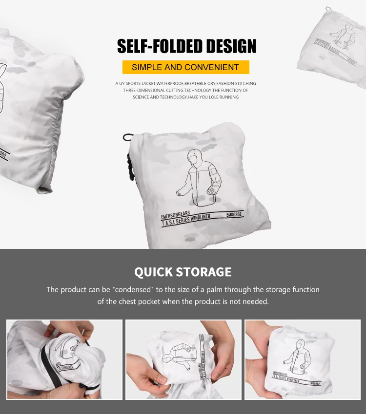 - El bolsillo frontal en el pecho está diseñado en el lado izquierdo y el tamaño del bolsillo es lo suficientemente grande para acceder a los objetos interiores.Además, se puede guardar fácilmente en el bolsillo del pecho, invertir y almacenar en un tamaño extremadamente pequeño.