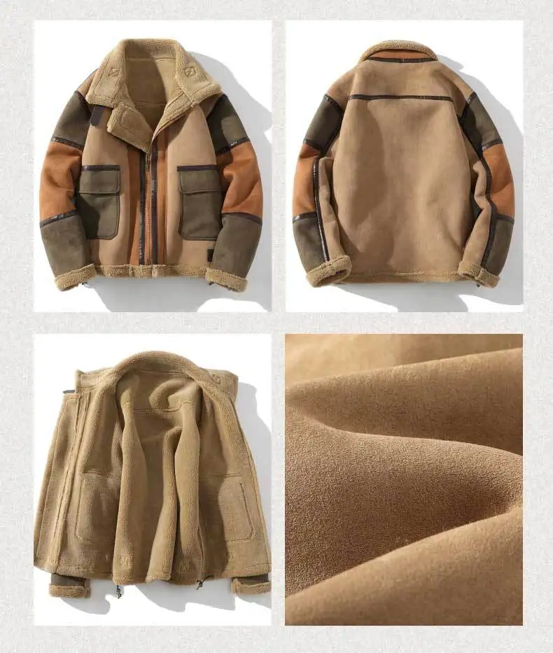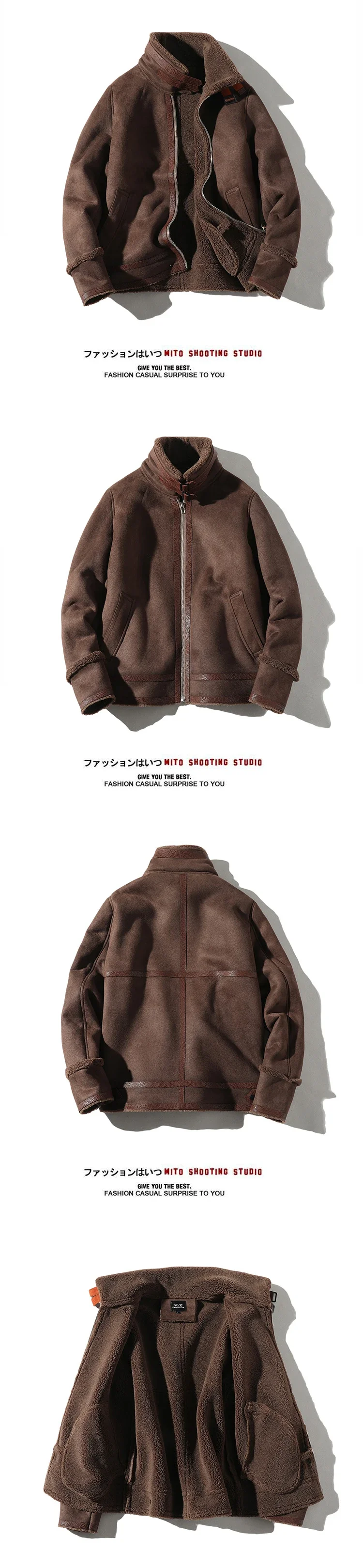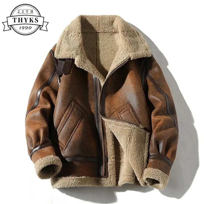 Chaqueta de piel de una pieza para hombre, abrigos gruesos de gran tamaño, chaquetas de cuero de marca de gama alta, abrigos casuales de piel de oveja, moda masculina, Otoño e Invierno