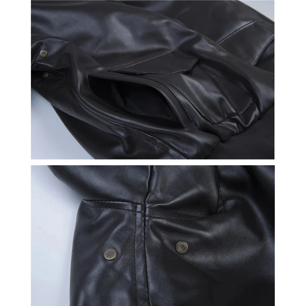Chaqueta de piloto Vintage para hombre, chaqueta de cuero de motocicleta antigua, a prueba de viento y frío, abrigo cálido, suelto, a prueba de viento