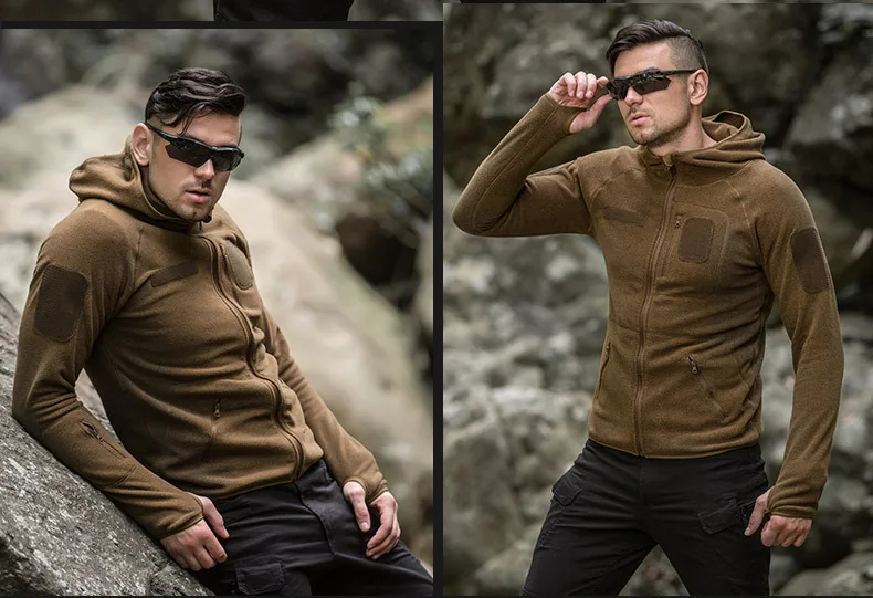 Hot Spring Tactical Training Fleece Jacket Outdoor Cardigan Suéter con capucha Hombres Camping Senderismo Pesca Caza Abrigo Ropa deportiva