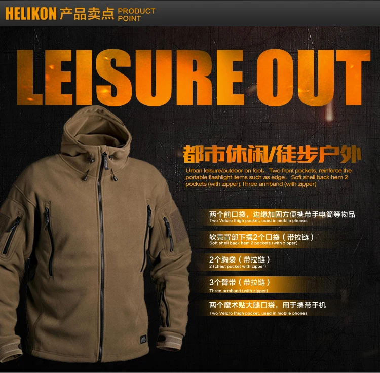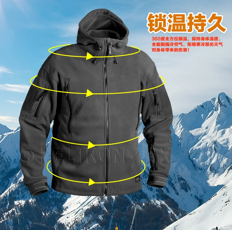 Chaqueta polar táctica de doble cara, Superfina, con capucha y gruesa