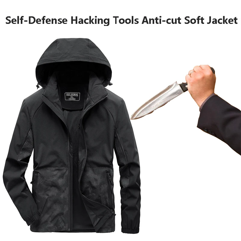Autodefensa, antipuñaladas, anticorte, manga larga, protección de cuerpo completo, chaqueta de talla grande, herramientas de piratería de seguridad, ropa ligera invisible flexible