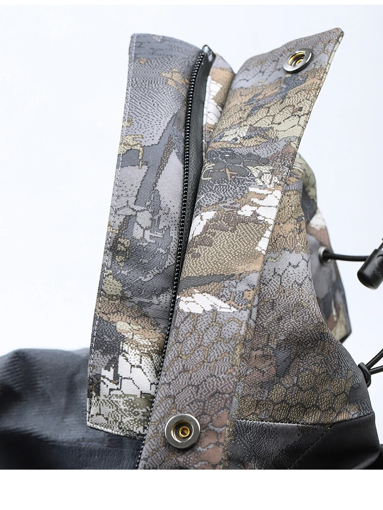 Chaqueta rígida de 3L con empalme clásico de camuflaje Hardcore para hombre, impermeable, húmeda, resistente al viento, para viajes al aire libre, a prueba de lluvia y nieve