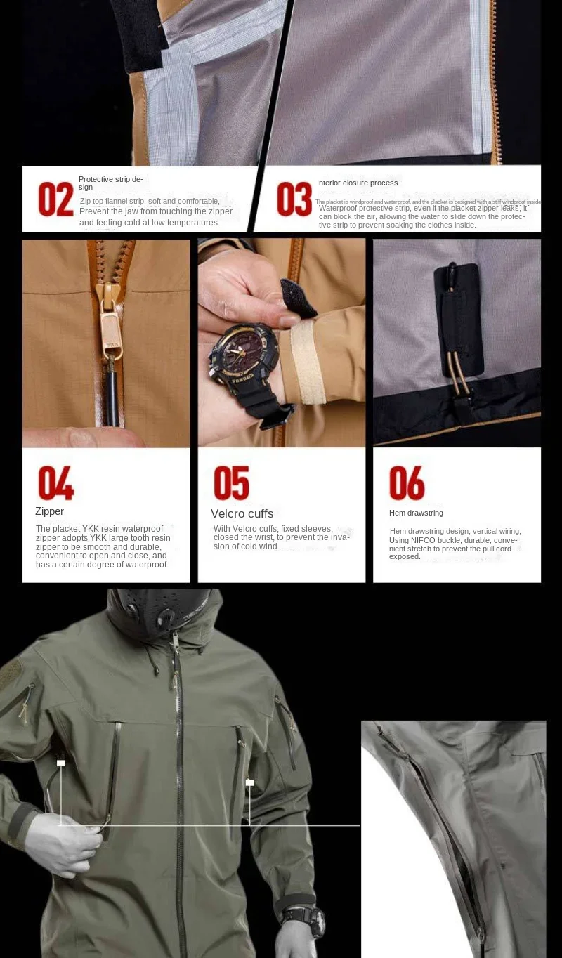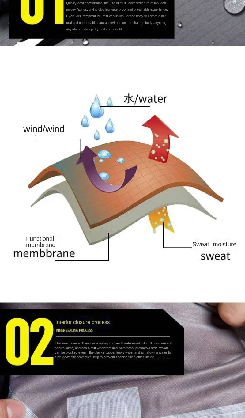 Muy buena calidad, los cierres y brocas son firmes y estables. La chaqueta no es transpirable, lo cual es muy bueno, por lo que es más impermeable. Por el costado, tiene cremalleras de ventilación. Normalmente uso la talla L, pero ahora tuve que pedir otra en XL porque la chaqueta era un poco ajustada.