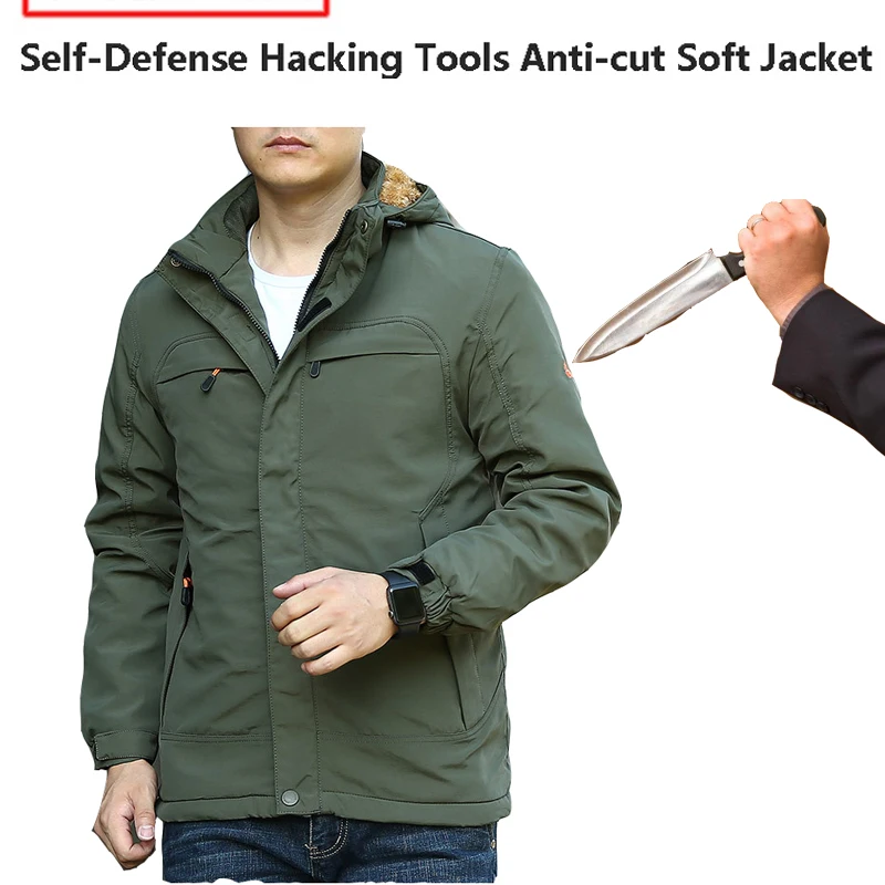 Men outdoor safety cut-proof and stab-resistant jacket self-defense anti-hacking stealth flexible waterproof warm fbi swat military tactical clothing