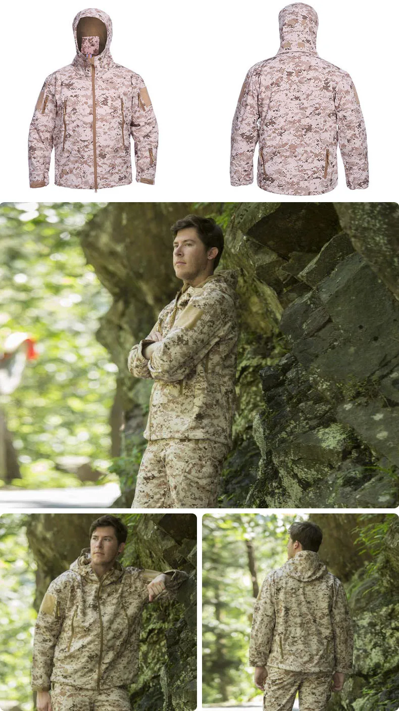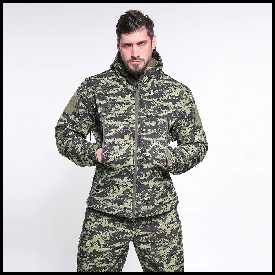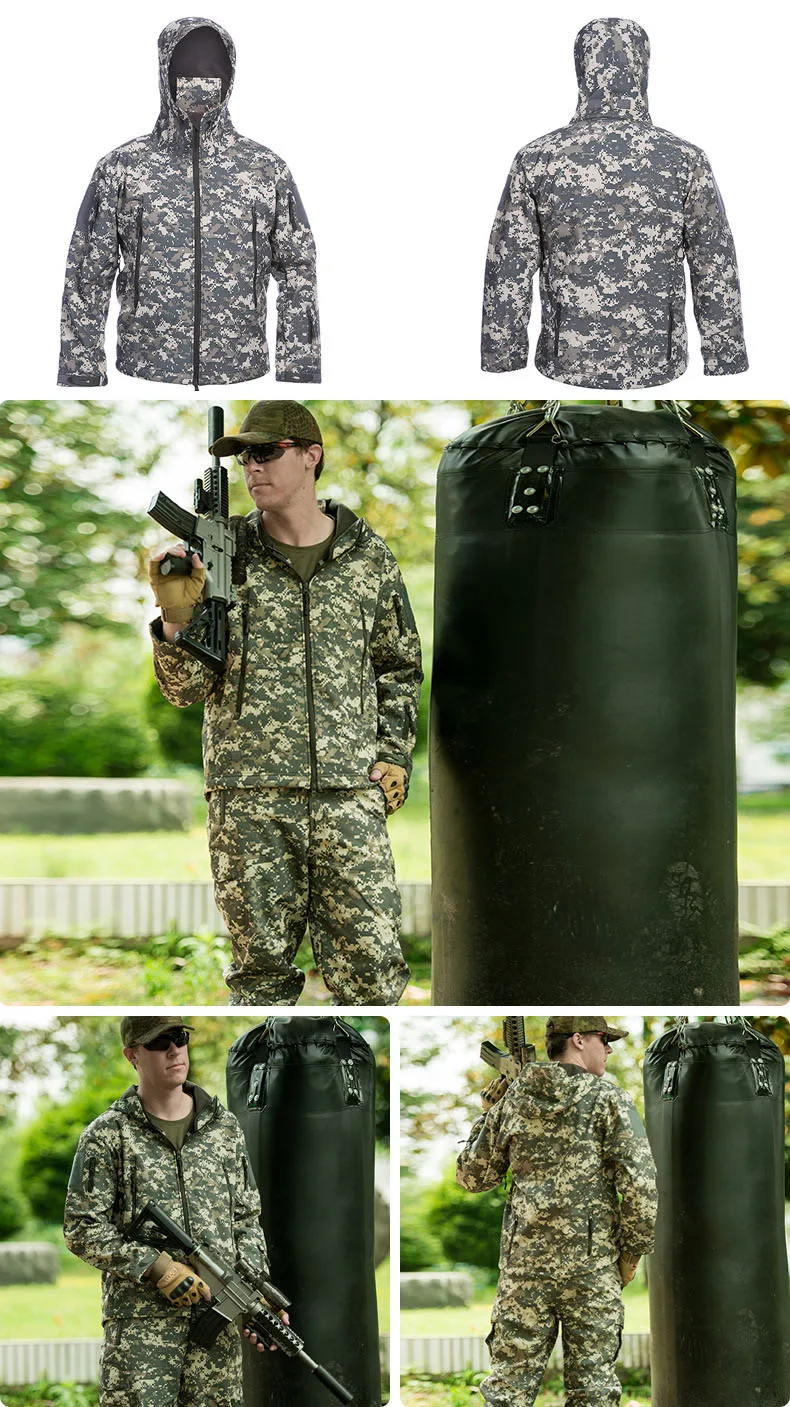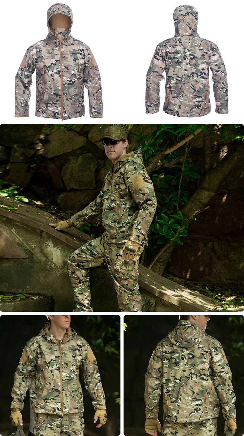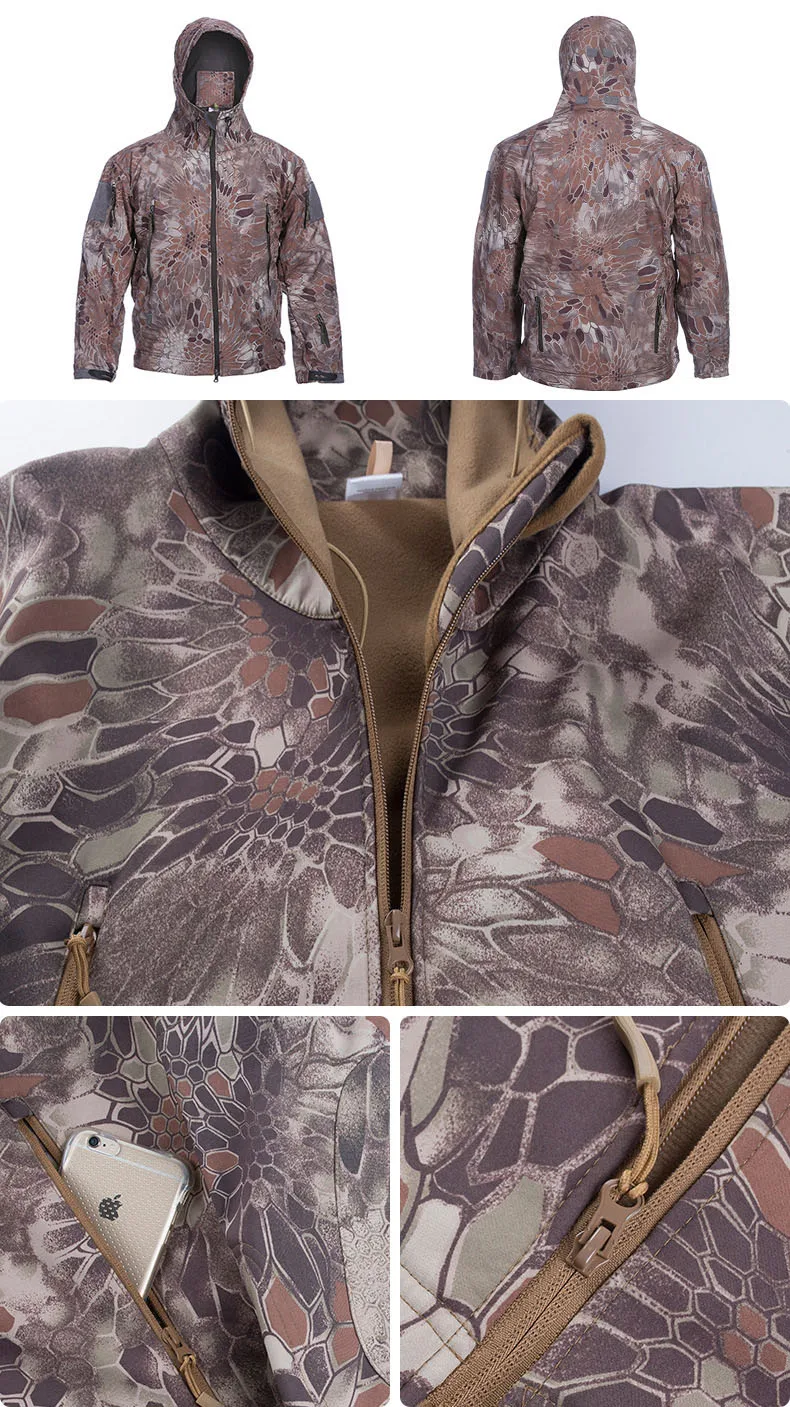 Chaqueta SoftShell impermeable para hombre, ropa de caza de camuflaje, chaquetas de forro polar con múltiples bolsillos, abrigos de escalada para acampar al aire libre
