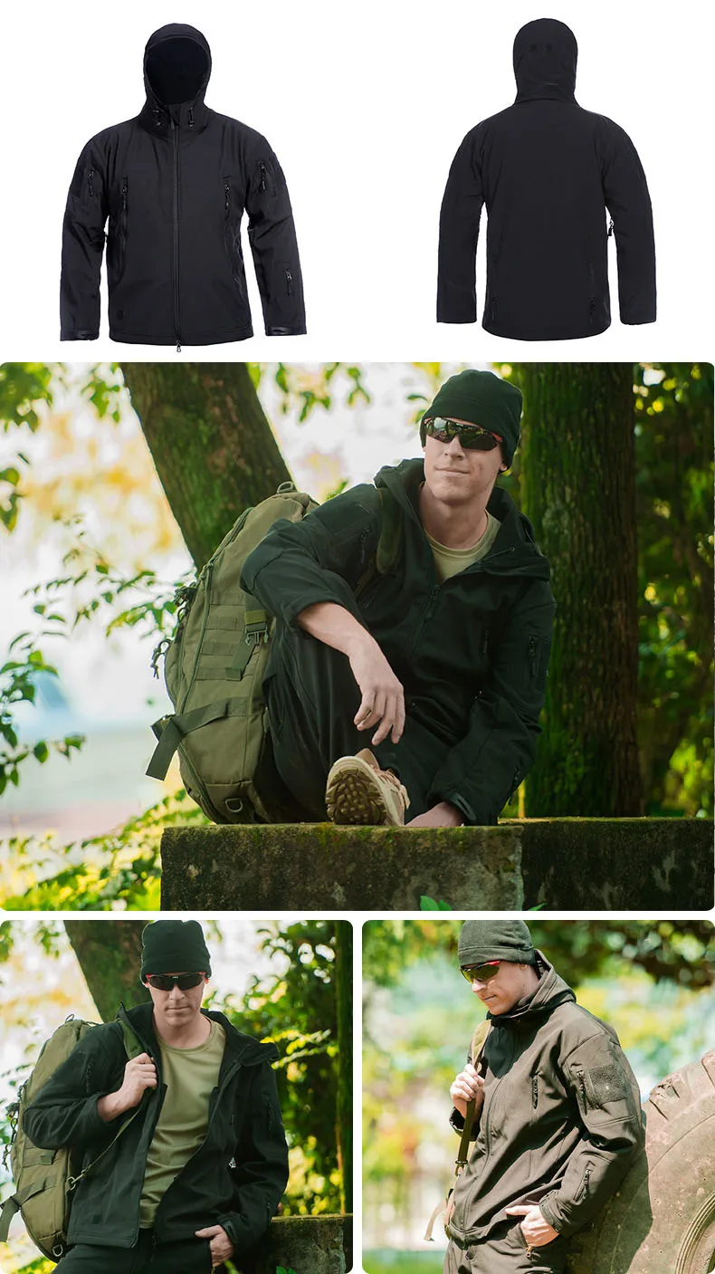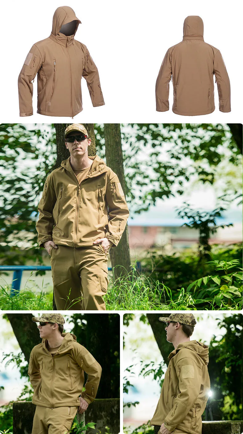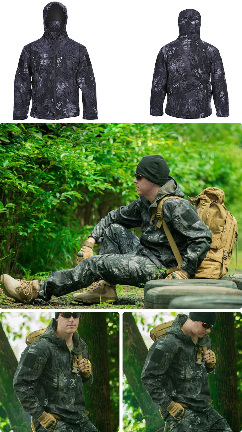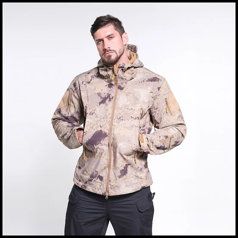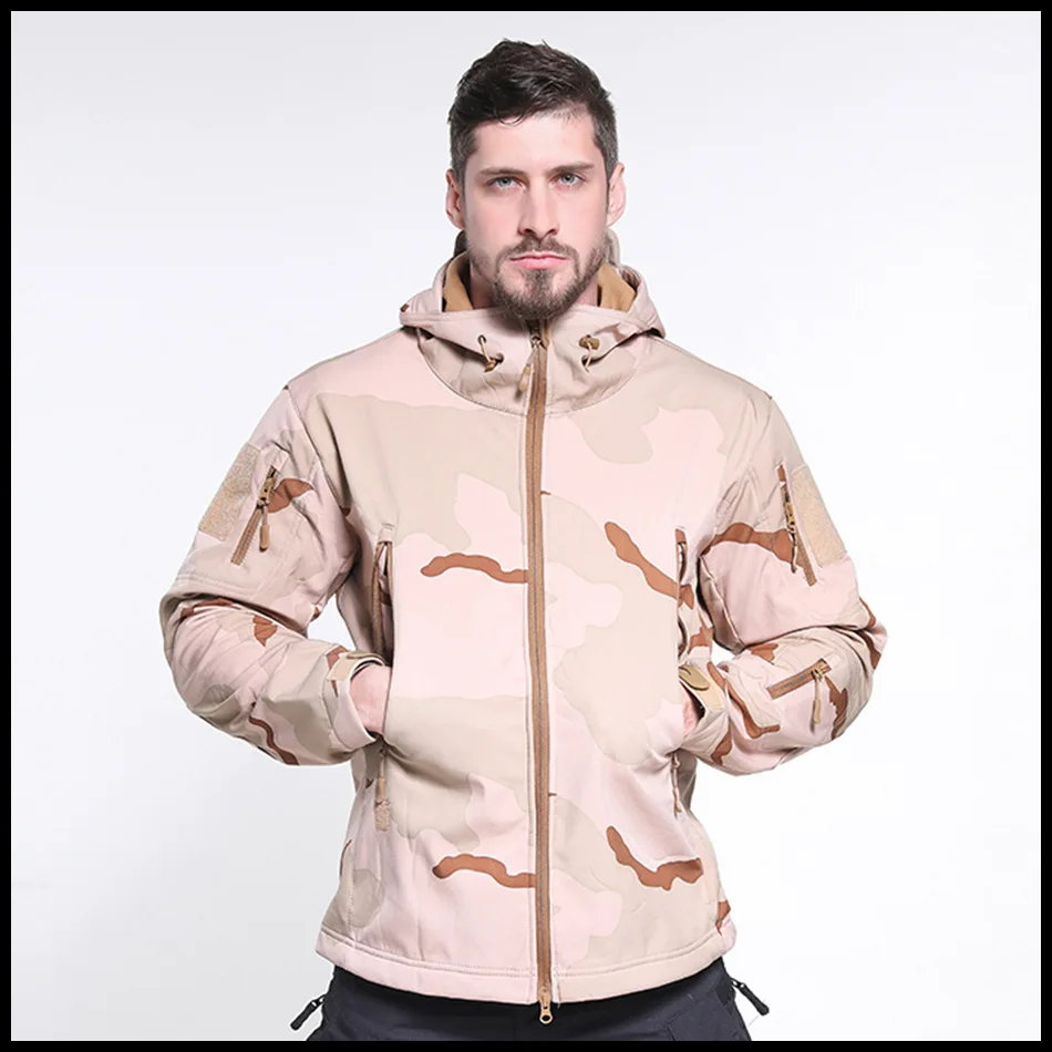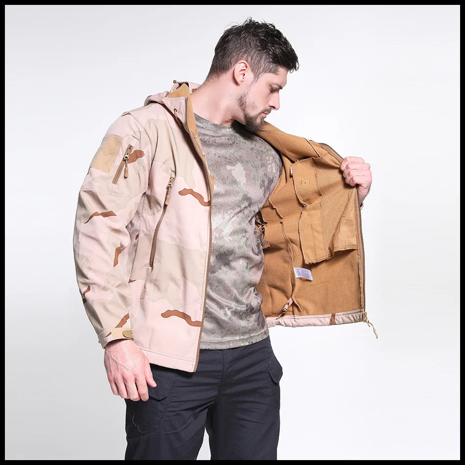 Chaqueta SoftShell impermeable para hombre, ropa de caza de camuflaje, chaquetas de forro polar con múltiples bolsillos, abrigos de escalada para acampar al aire libre
