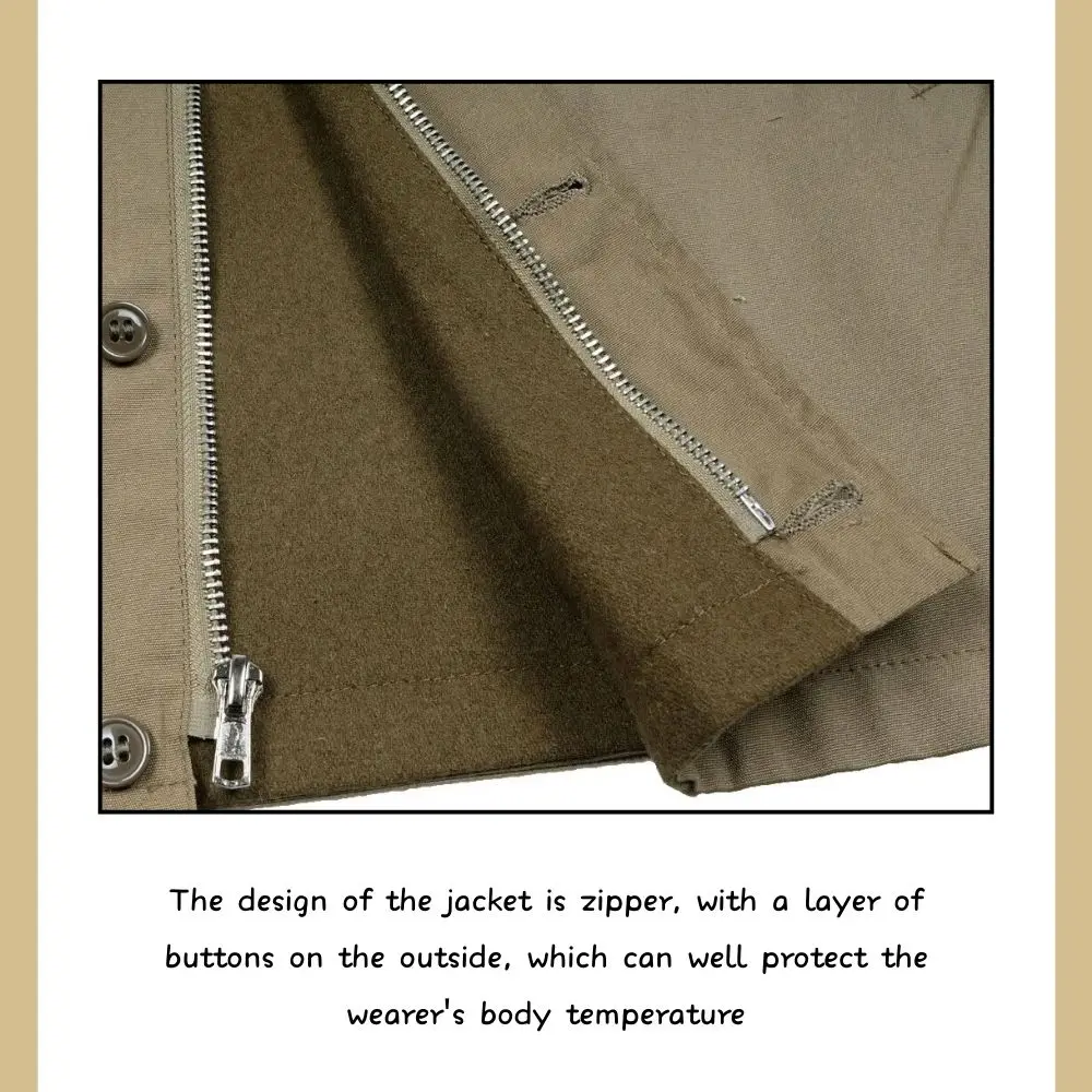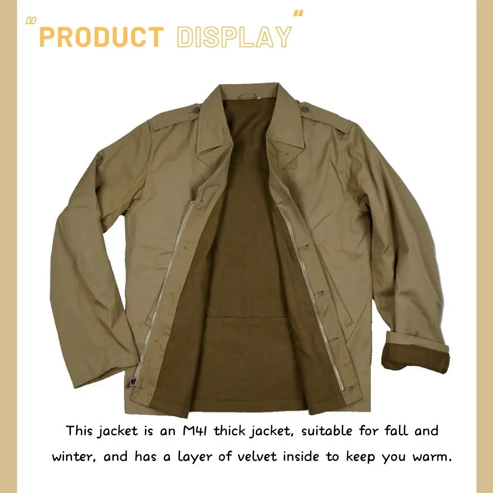 This jacket is the American soldiers during world war ii jacket, jacket material is cotton material, soft, wearing comfortable, adopted the 1:1 engraving details of world war ii M41 jacket, engraving details rigorous detail, jacket size data are artificial measurement, due to different measurement technique, measurement data may have 1-3cm error, will not affect the wear, please don't worry.