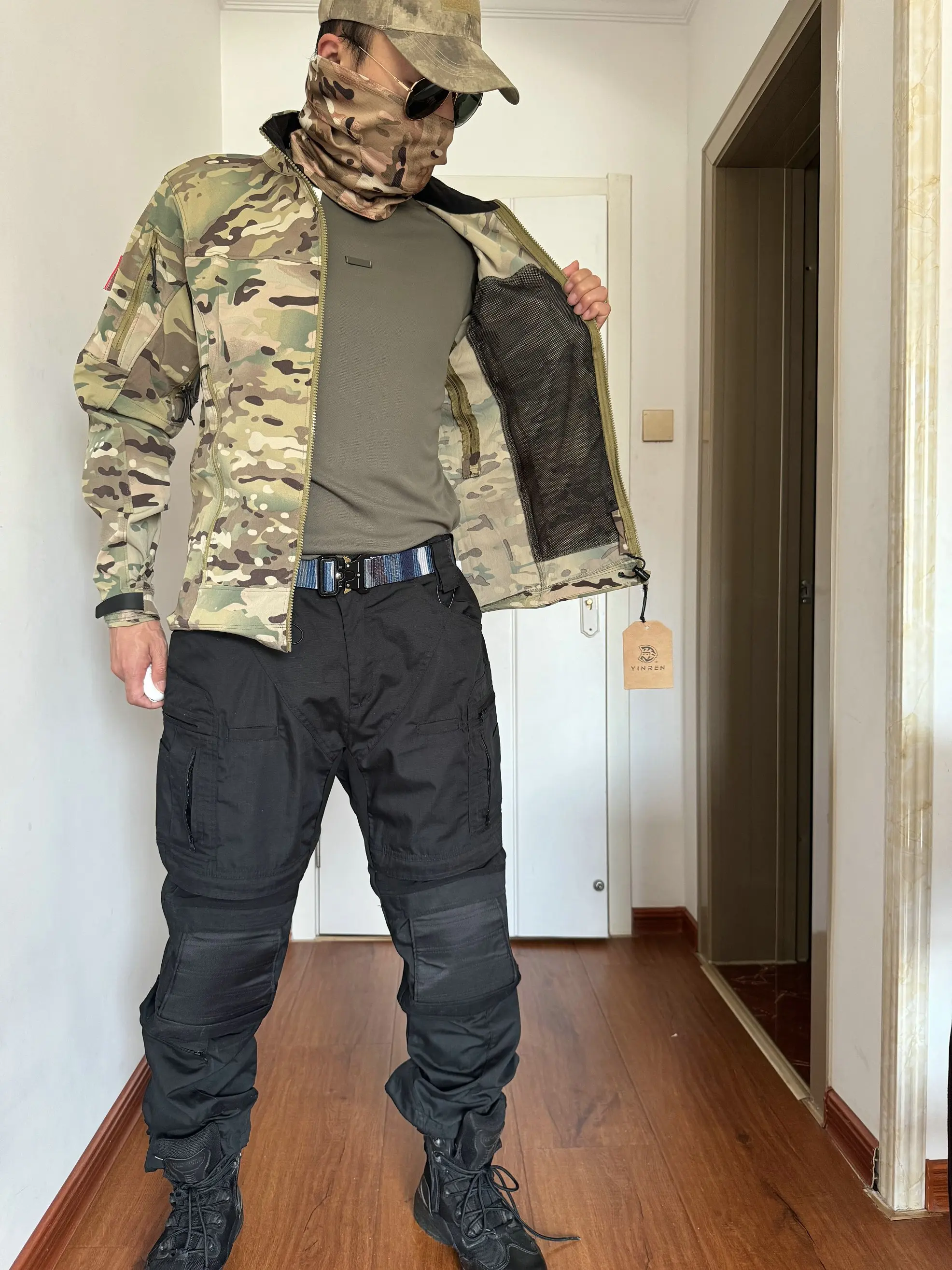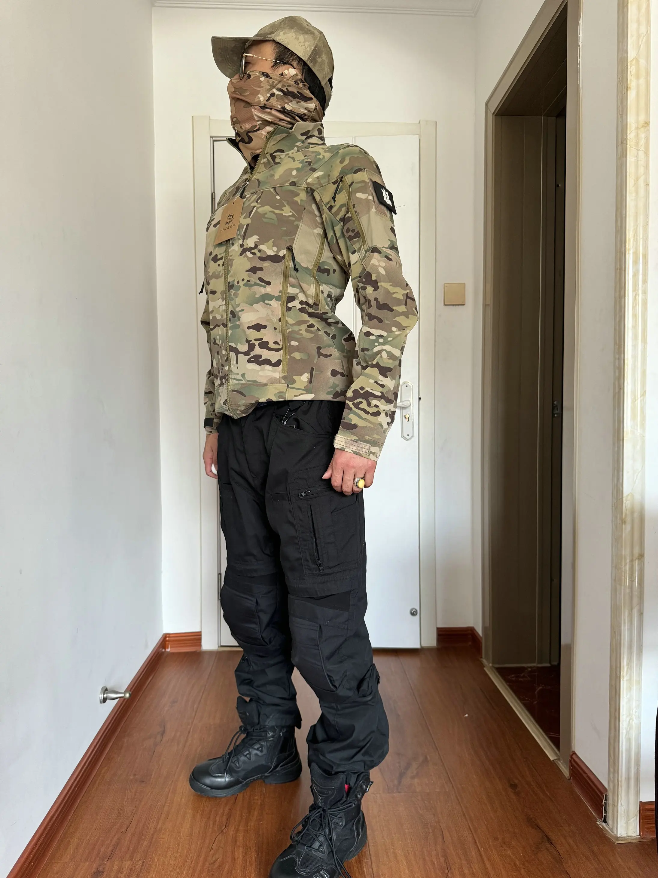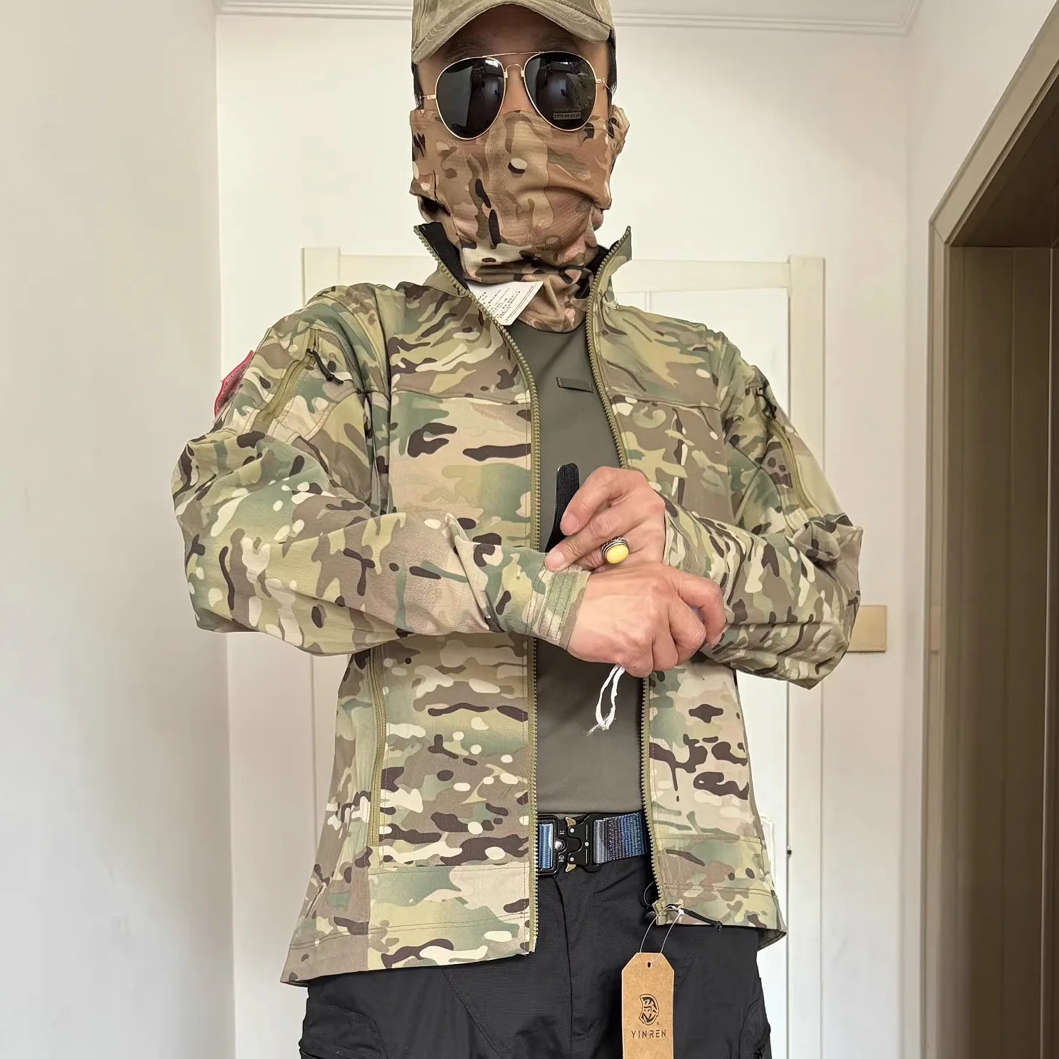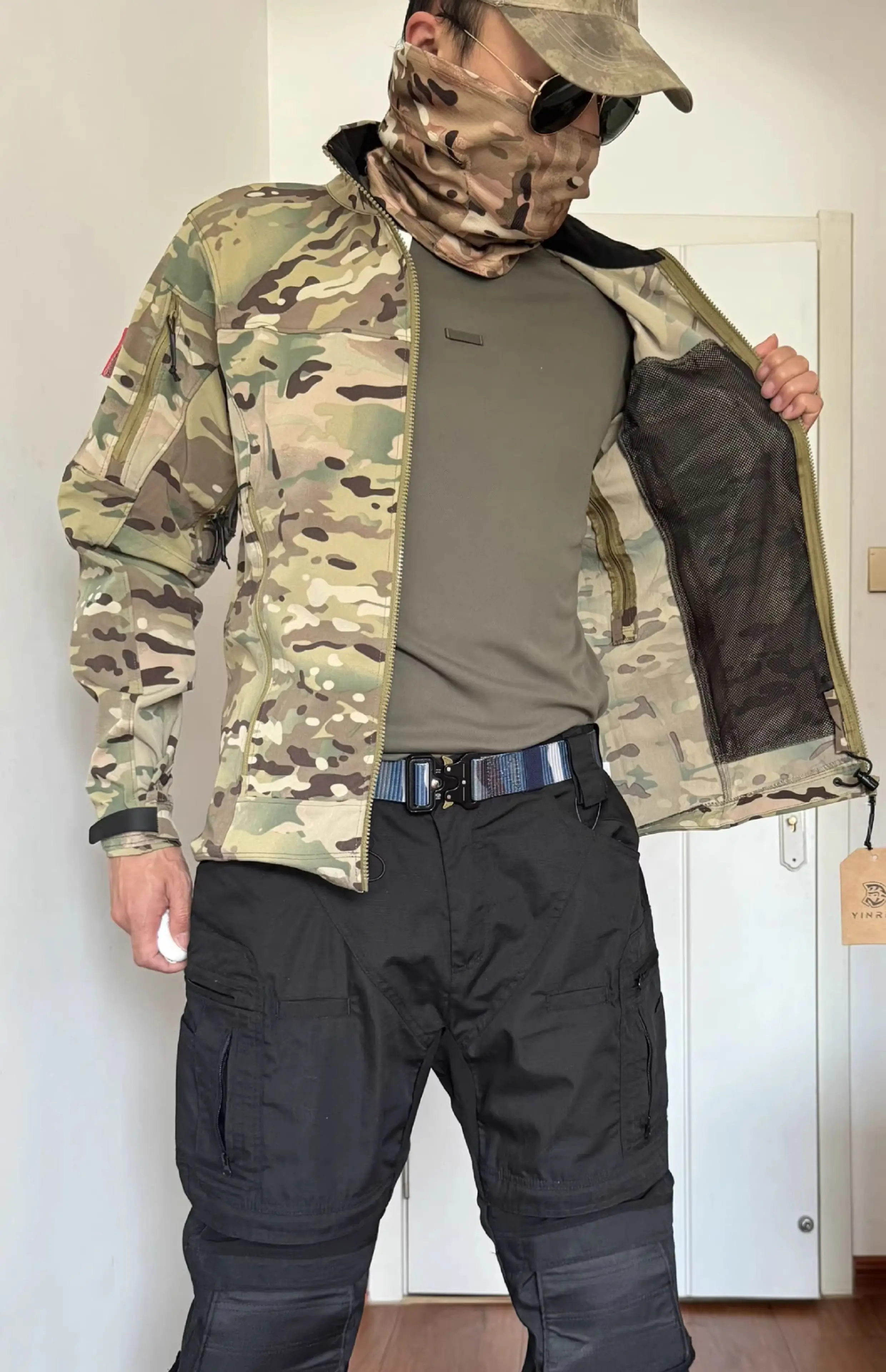 Chaqueta submáquina táctica unisex con múltiples bolsillos, elástica, transpirable, de cuatro lados, color naranja, primavera y otoño