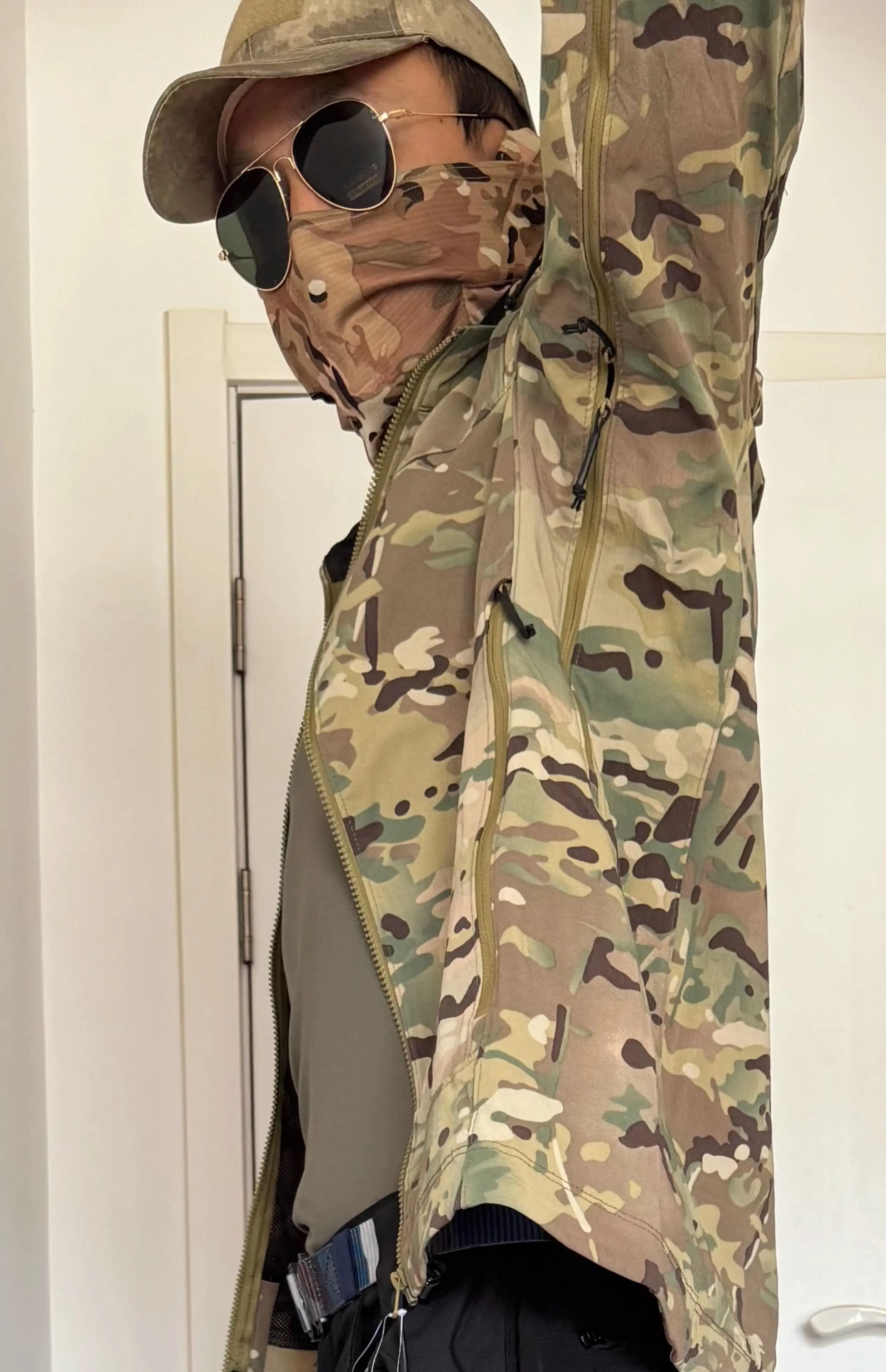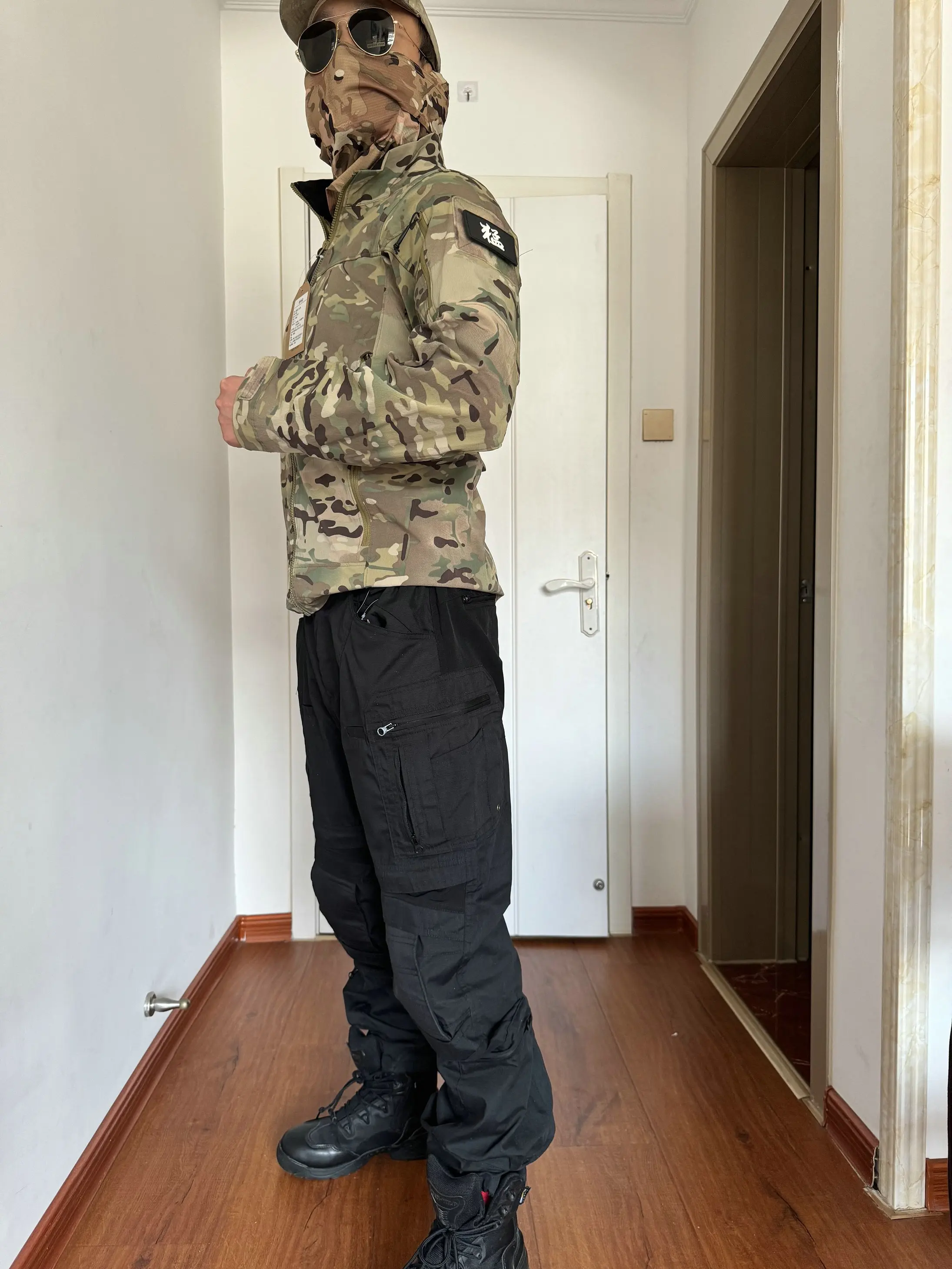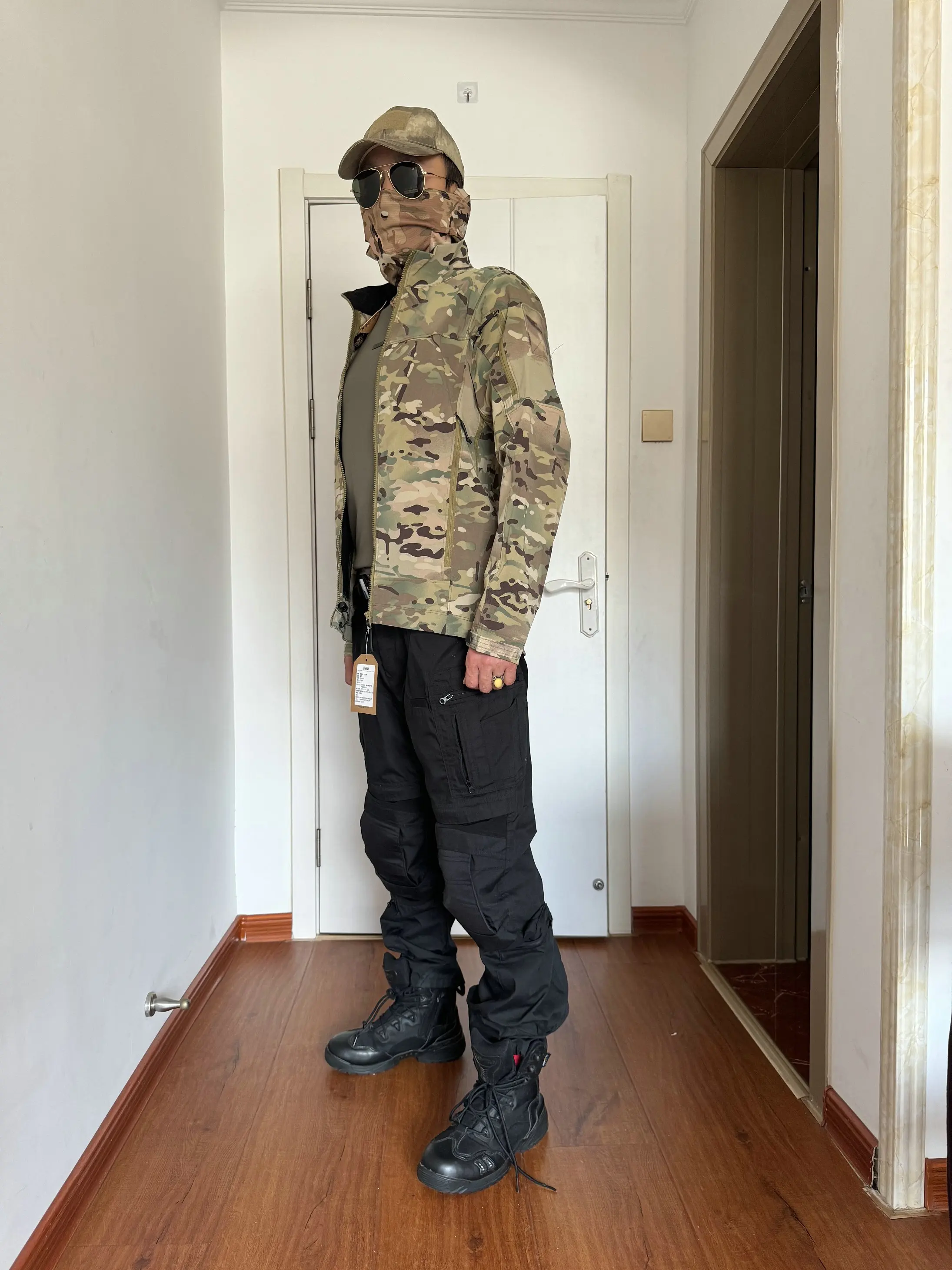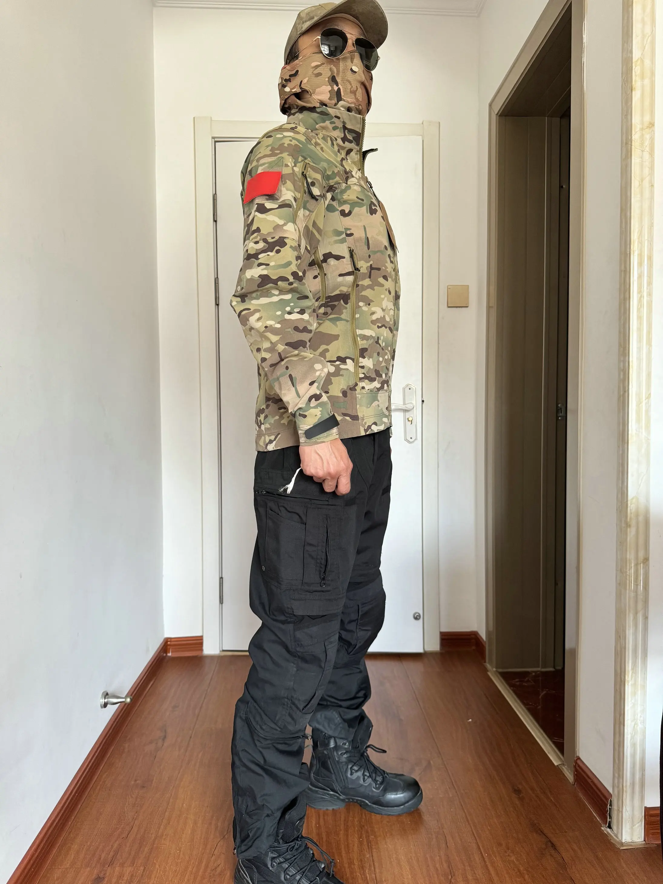 Chaqueta submáquina táctica unisex con múltiples bolsillos, elástica, transpirable, de cuatro lados, color naranja, primavera y otoño