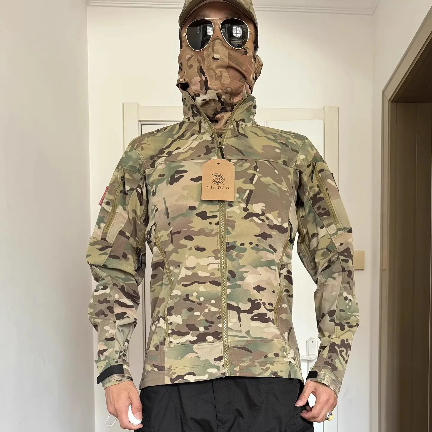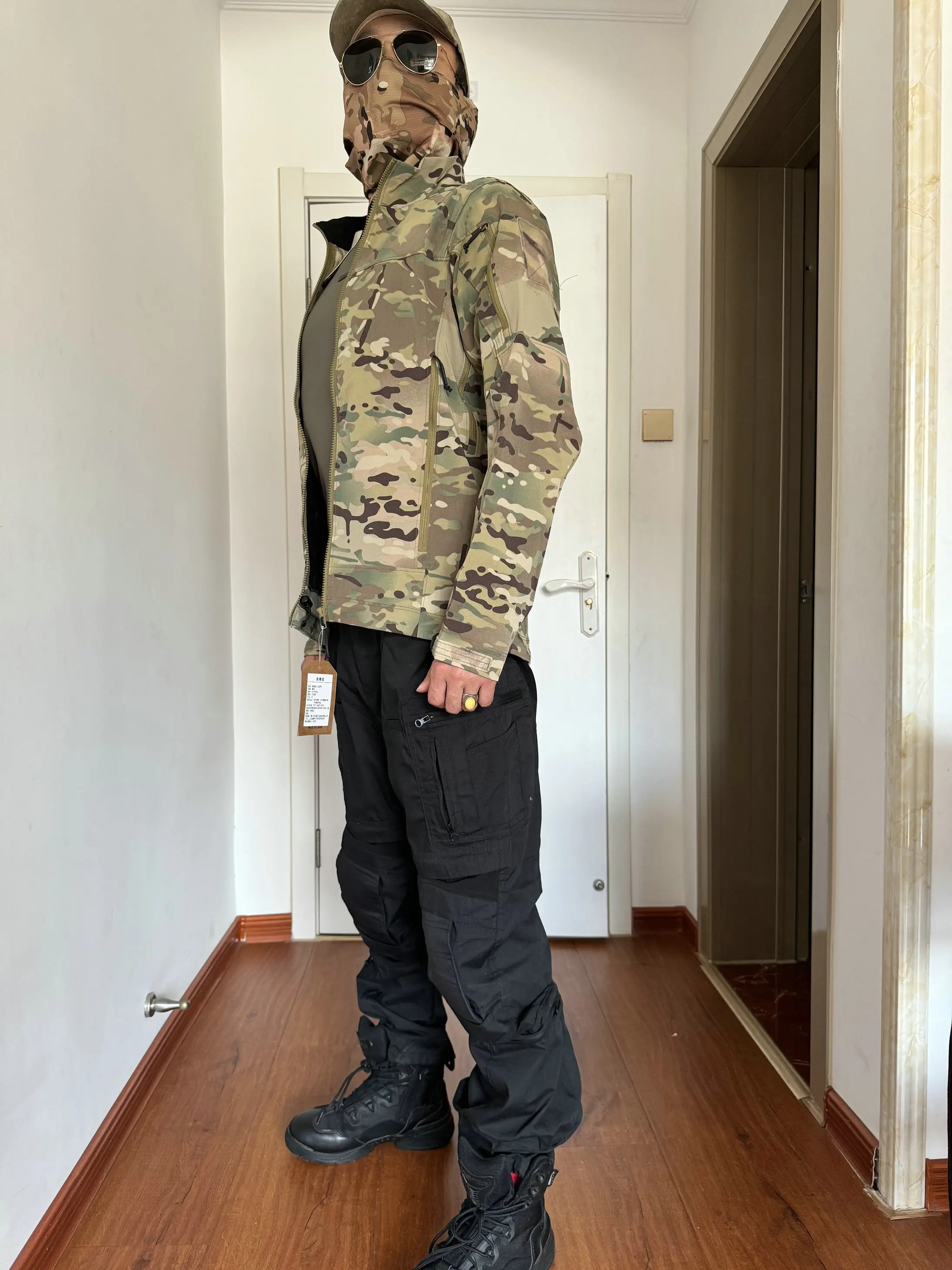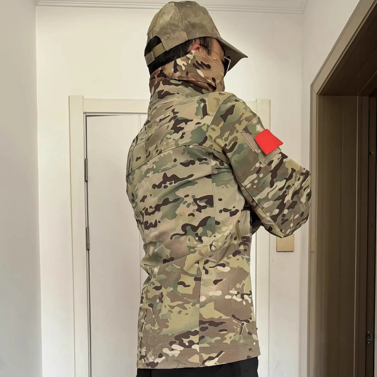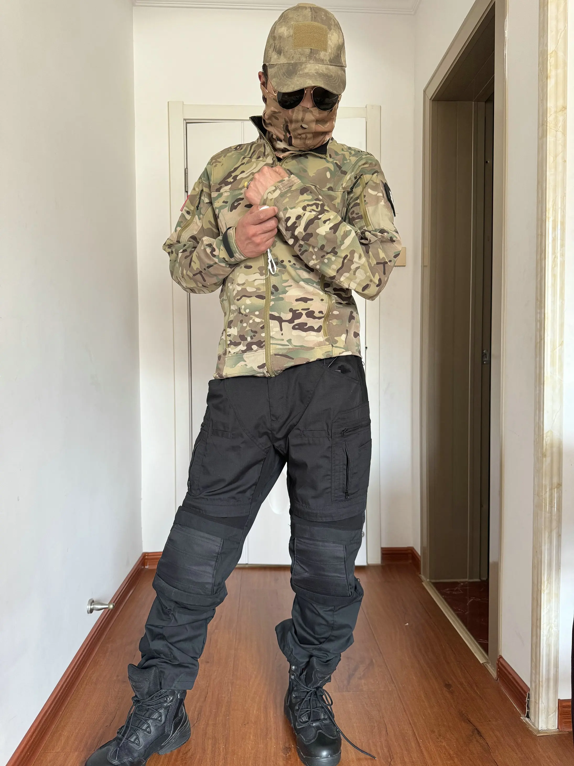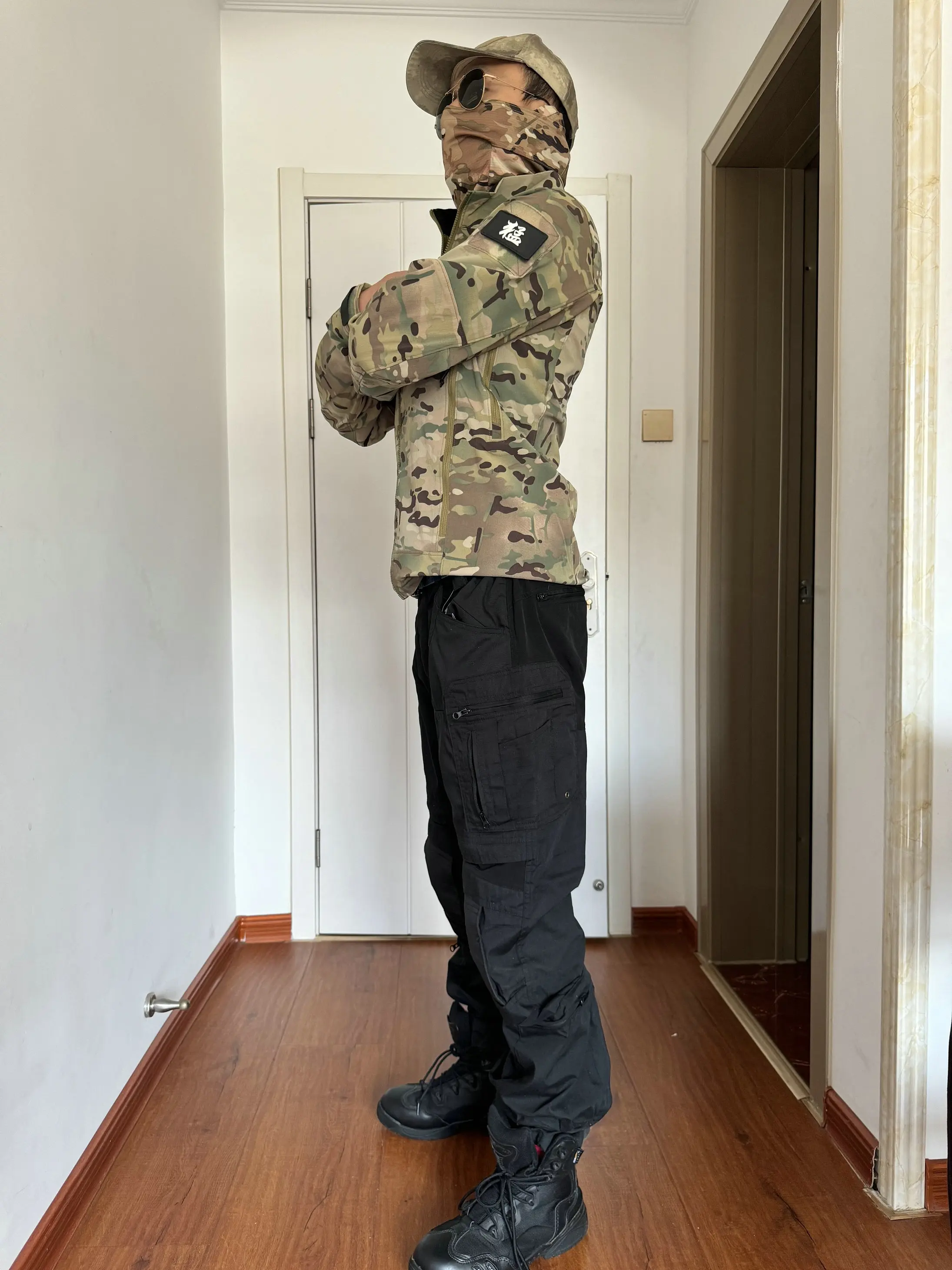 Chaqueta submáquina táctica unisex con múltiples bolsillos, elástica, transpirable, de cuatro lados, color naranja, primavera y otoño