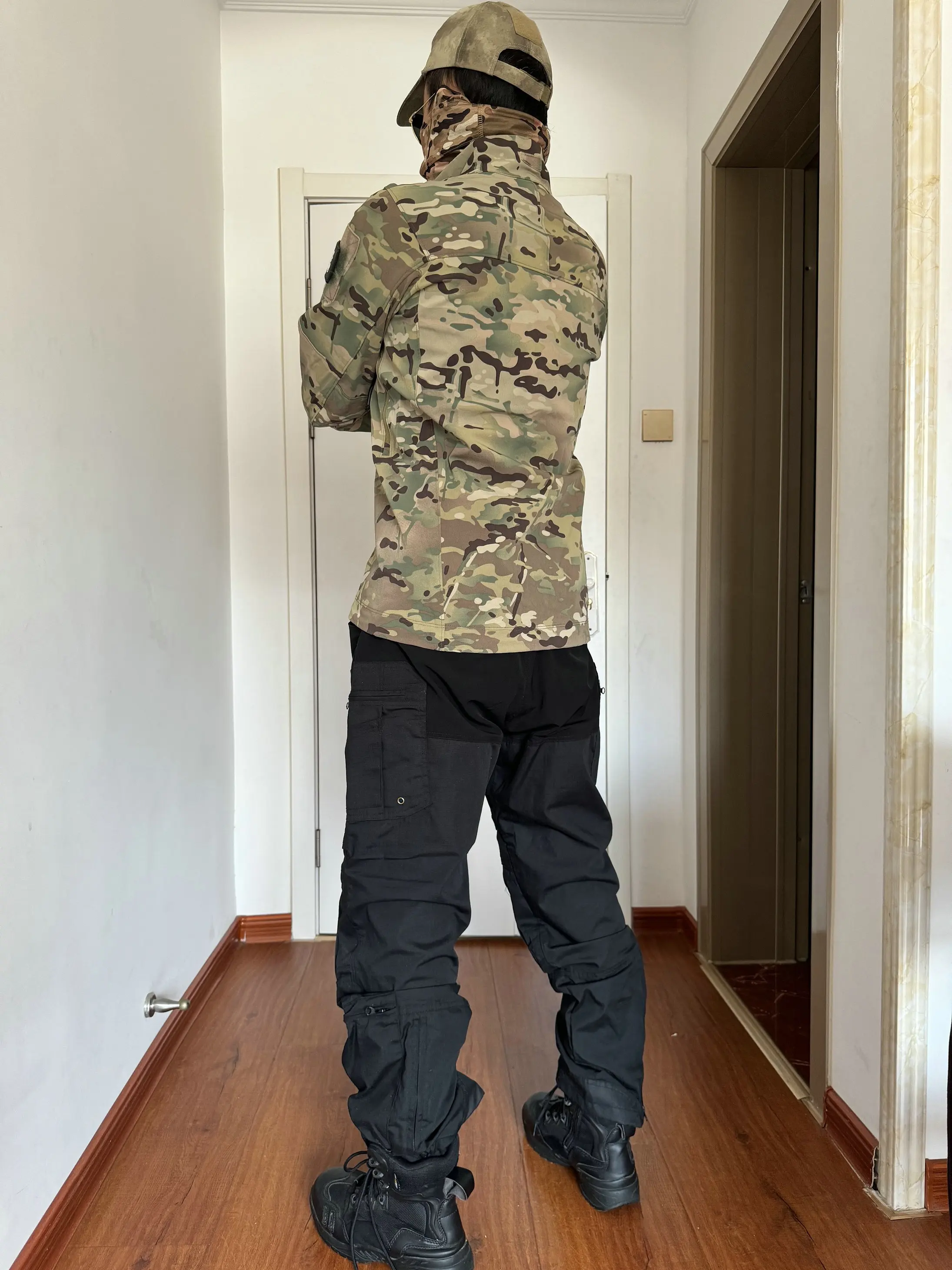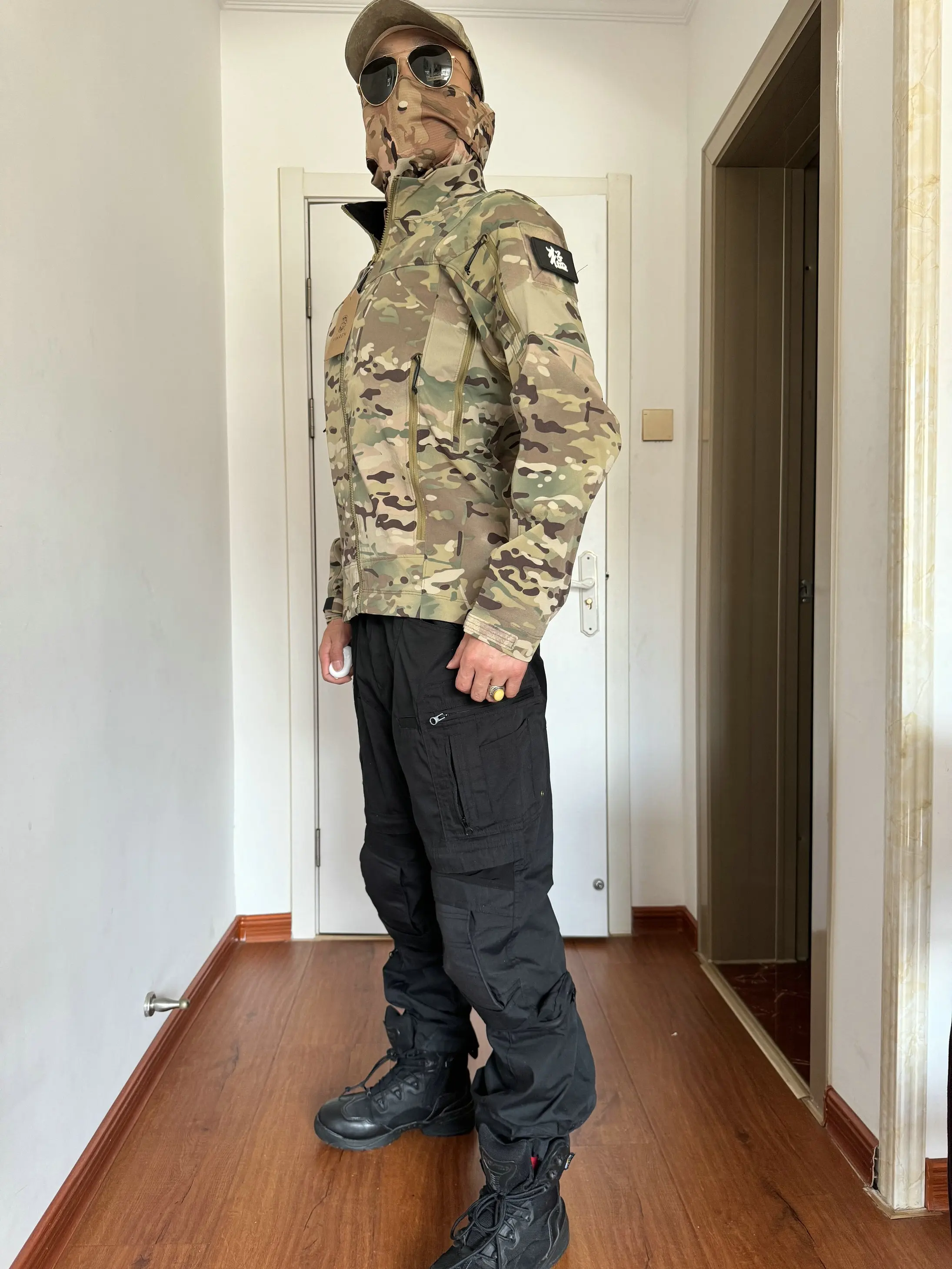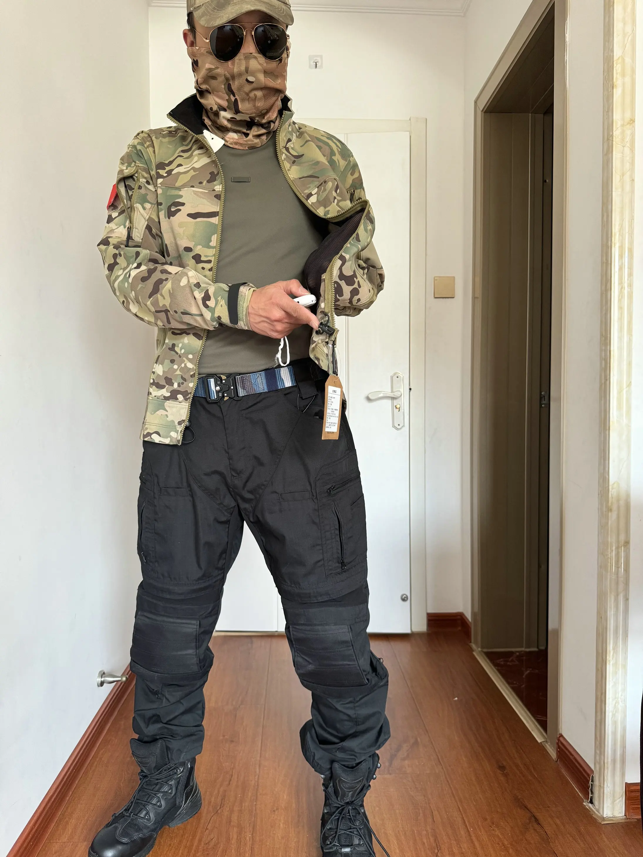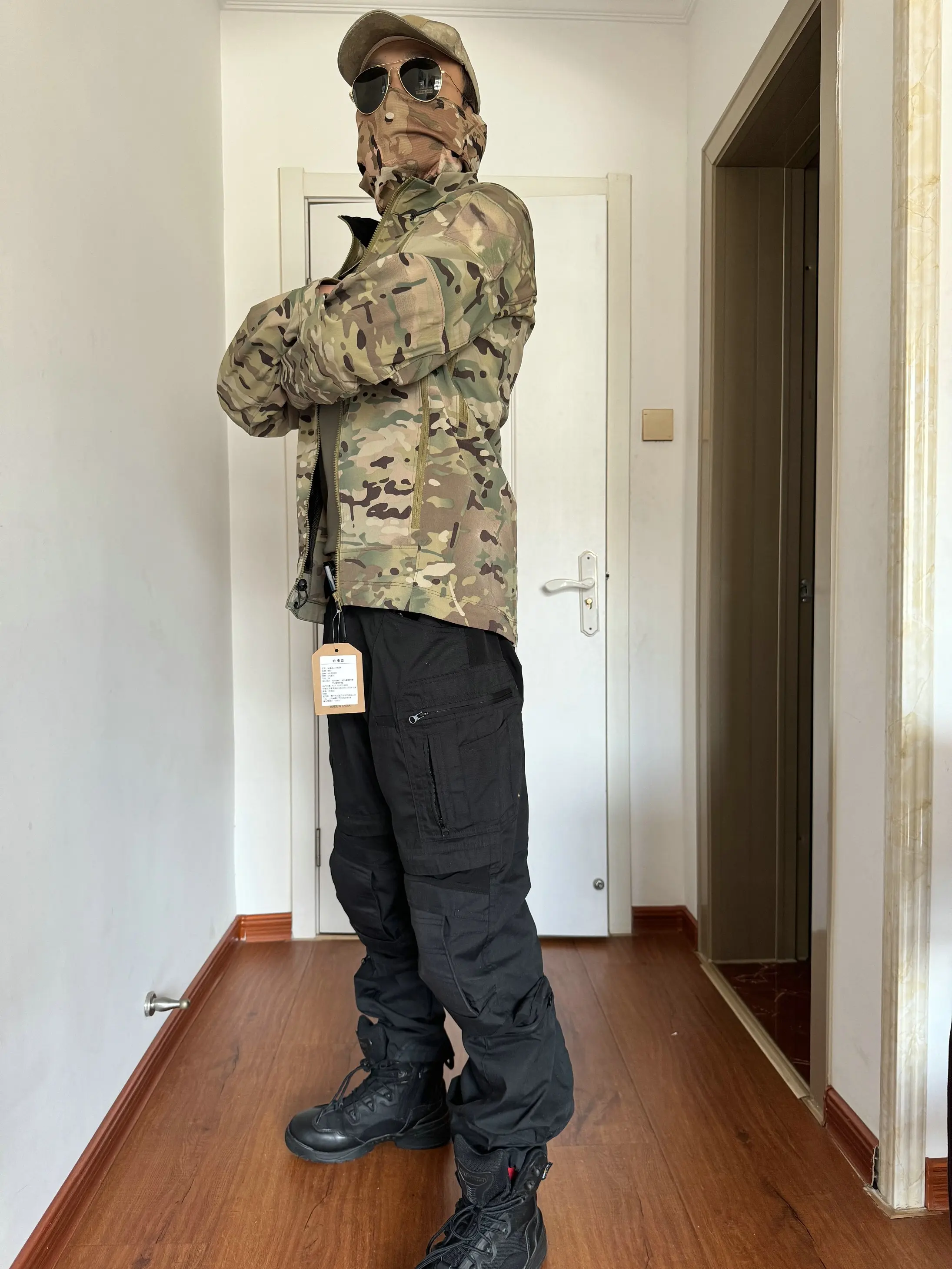 Chaqueta submáquina táctica unisex con múltiples bolsillos, elástica, transpirable, de cuatro lados, color naranja, primavera y otoño