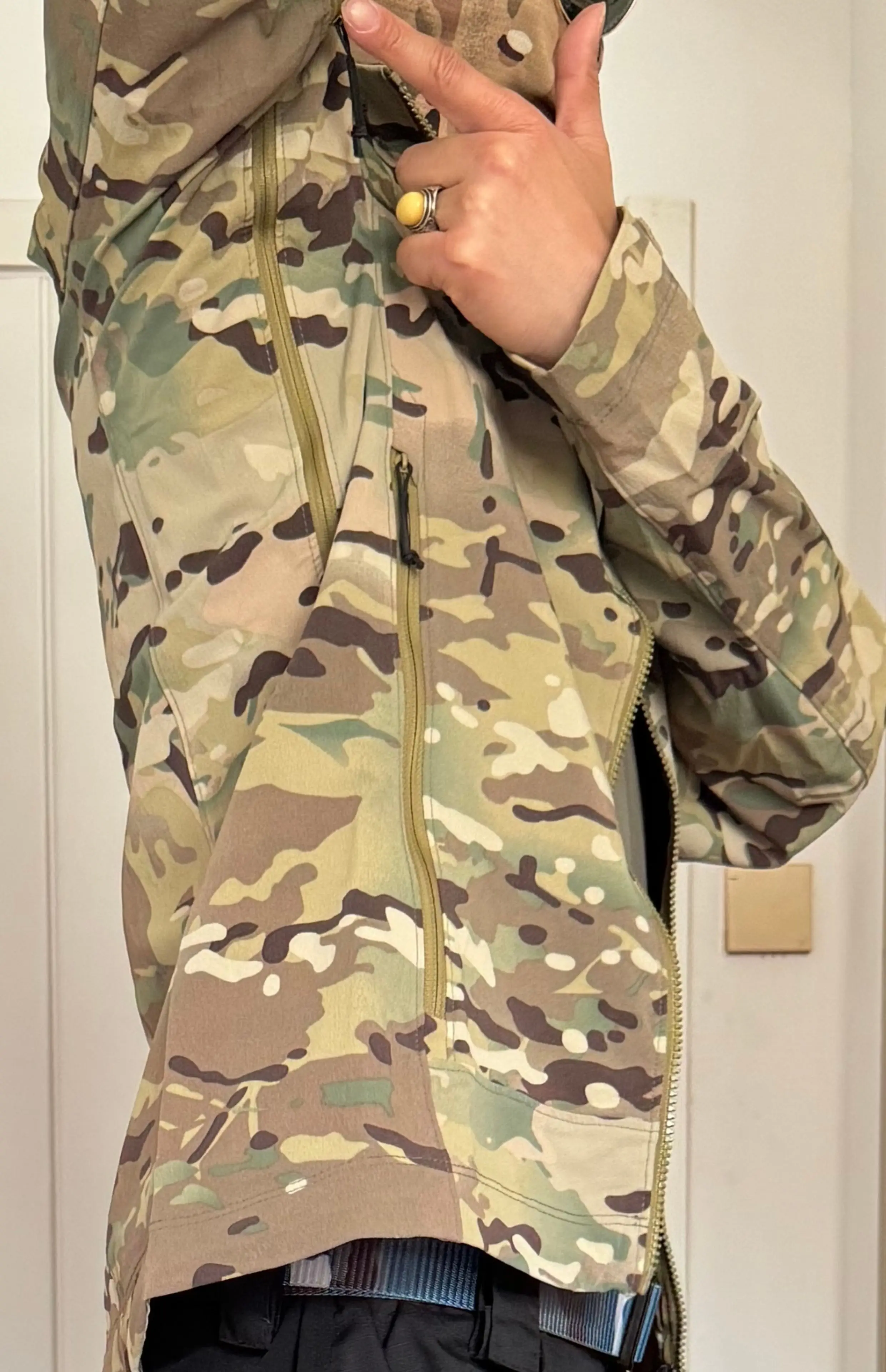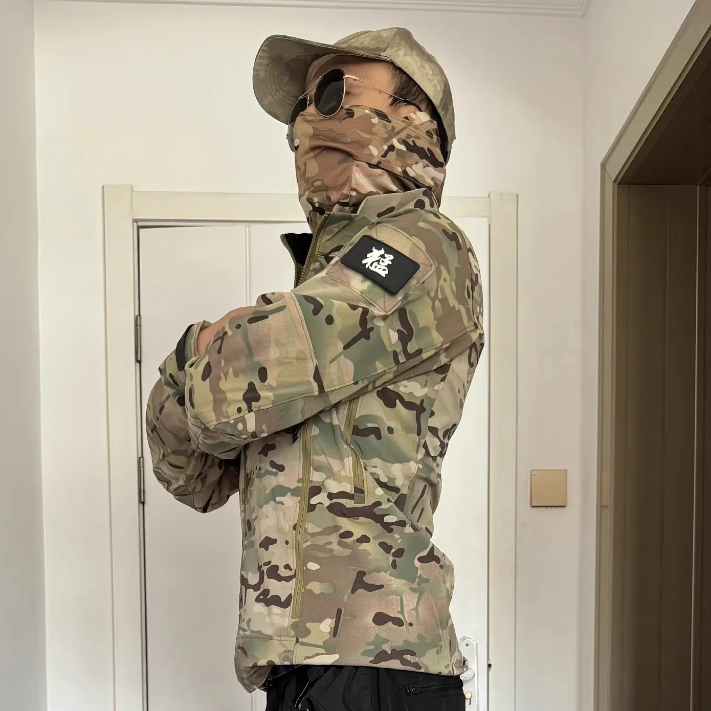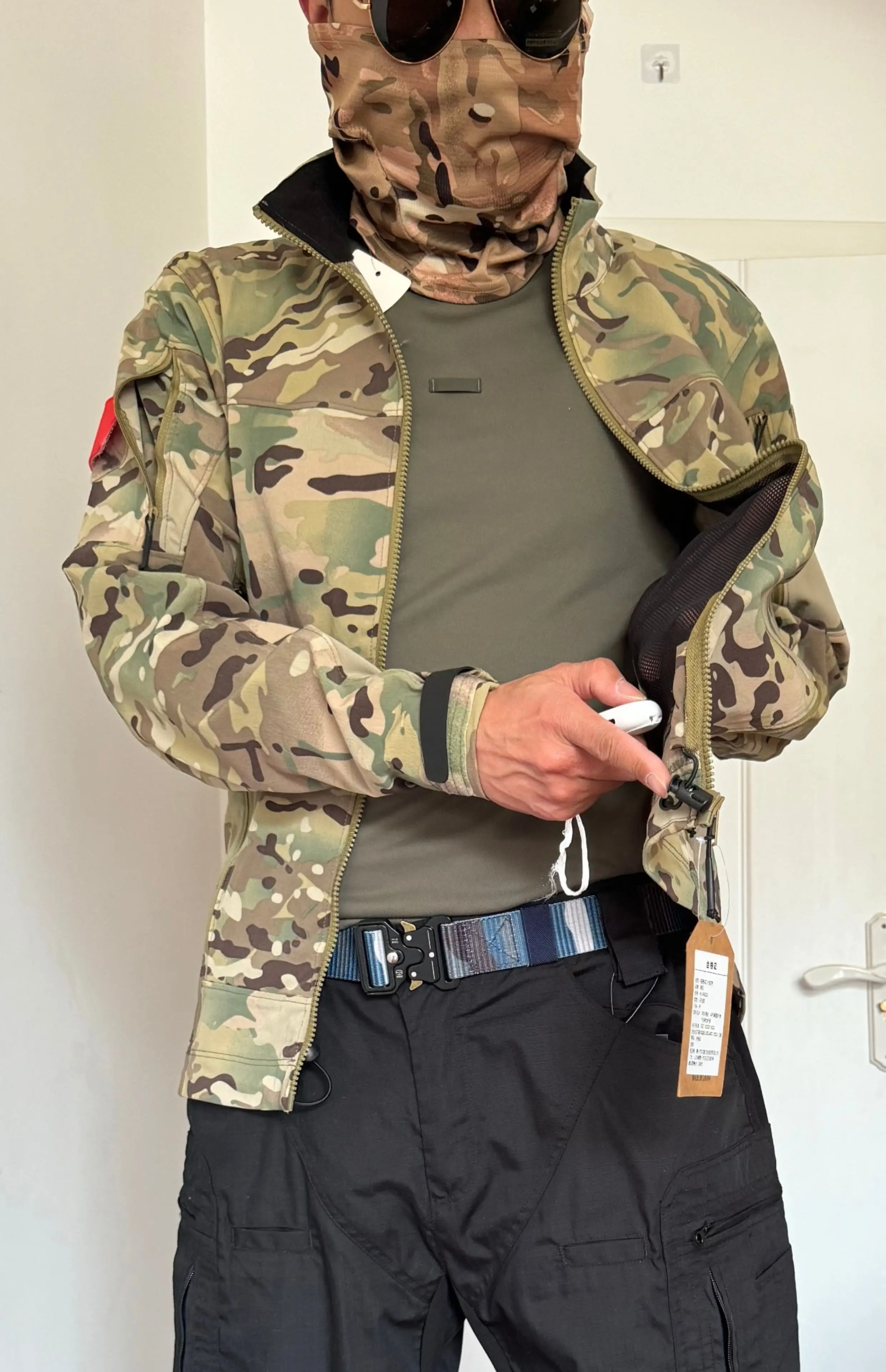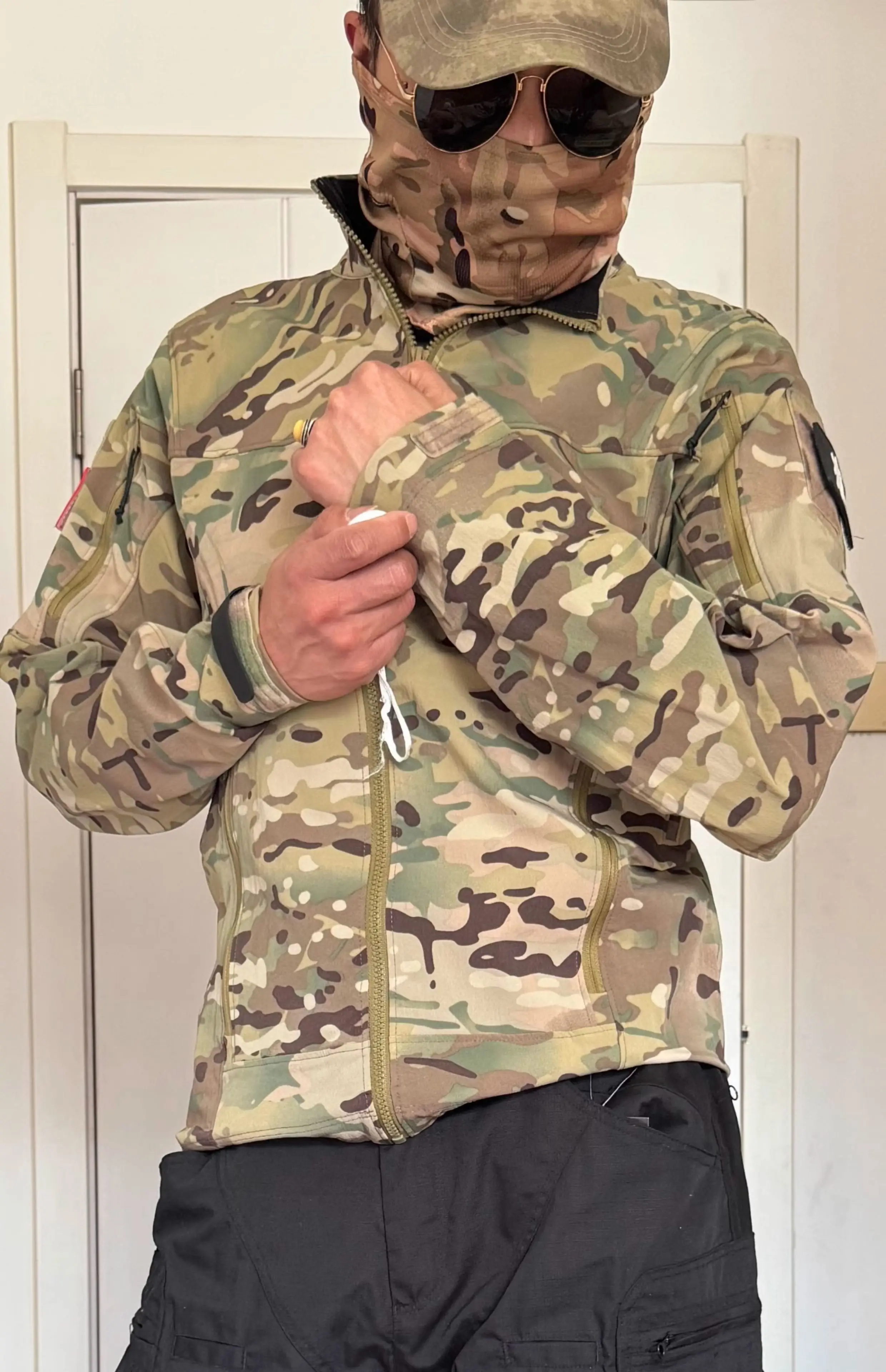 Chaqueta submáquina táctica unisex con múltiples bolsillos, elástica, transpirable, de cuatro lados, color naranja, primavera y otoño