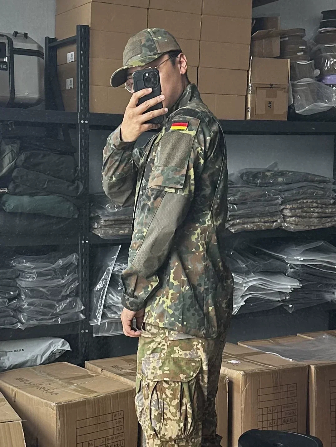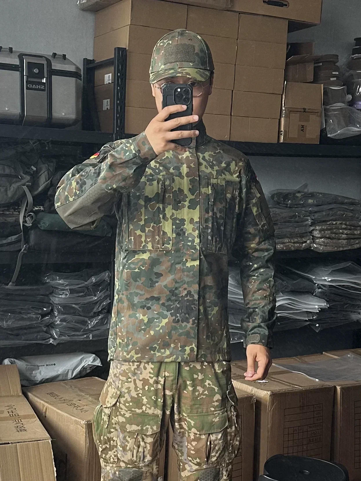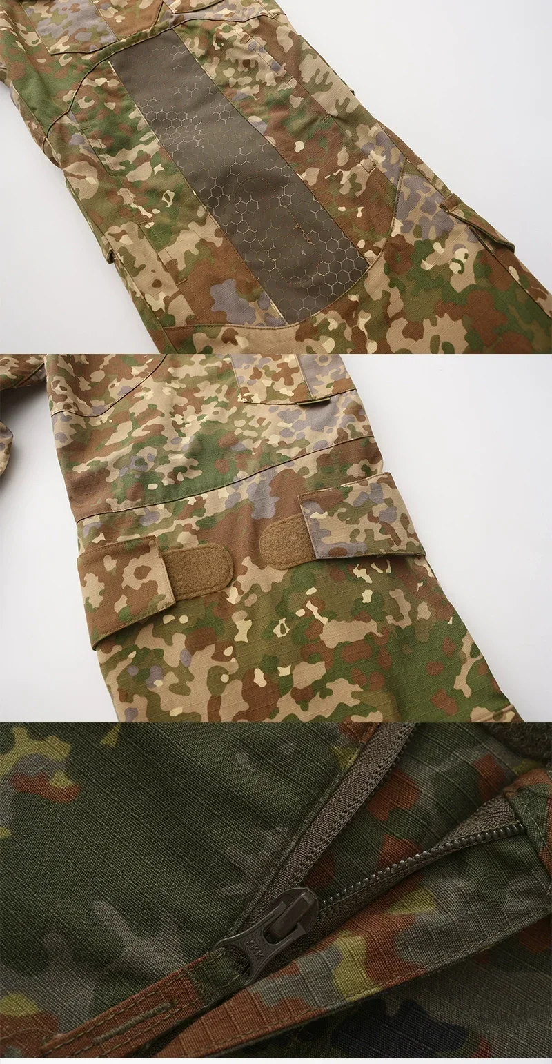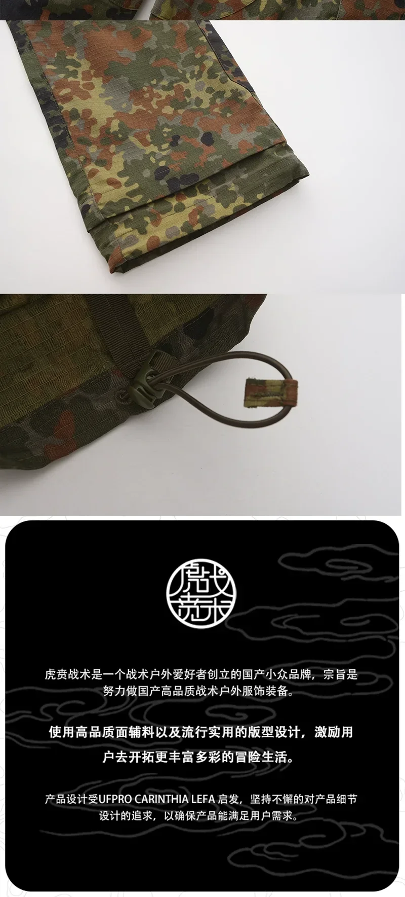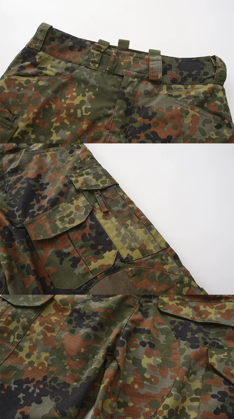 Camuflaje Flecktarn todoterreno: 50% algodón de alta calidad, 50% nailon anti infrarrojos 230 g