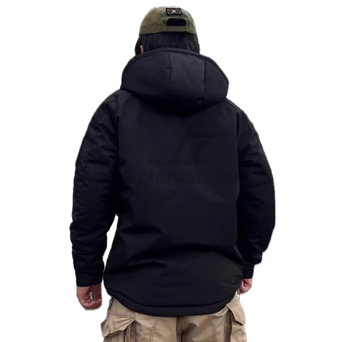 Chaqueta táctica de algodón para caza, Top negro puro, abrigo grueso cálido a prueba de frío para exteriores, camisas con capucha de combate, ropa