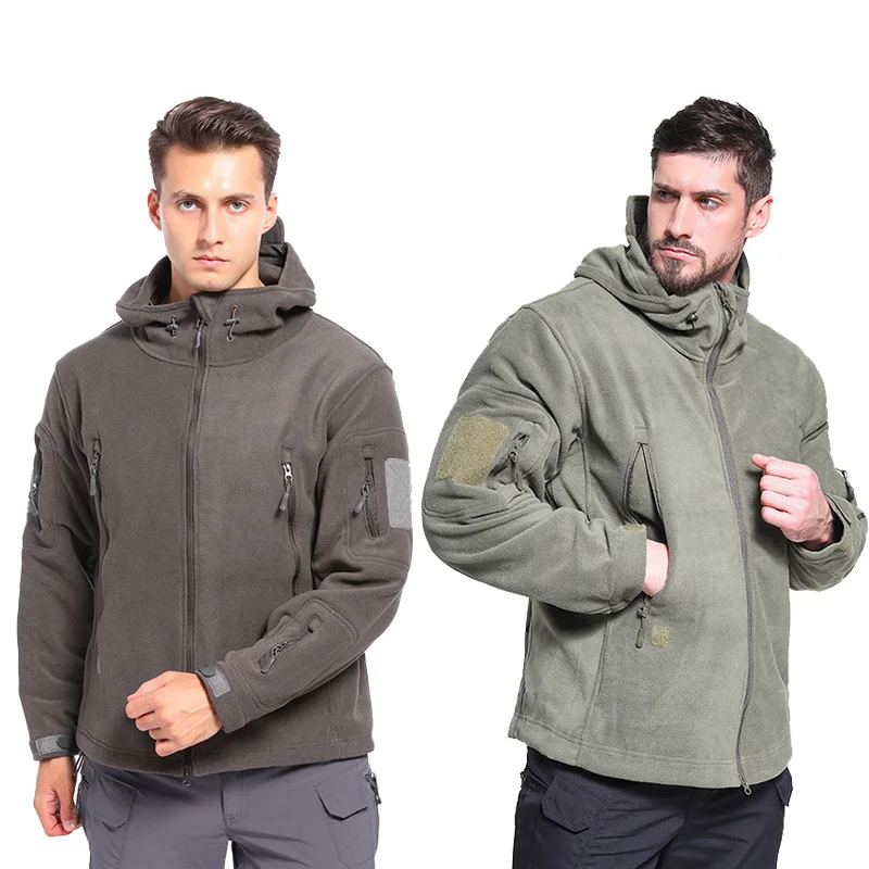Chaqueta táctica con capucha para deportes al aire libre para hombre, traje de caza militar, jersey con cremallera, chaqueta de senderismo cálida y resistente al viento