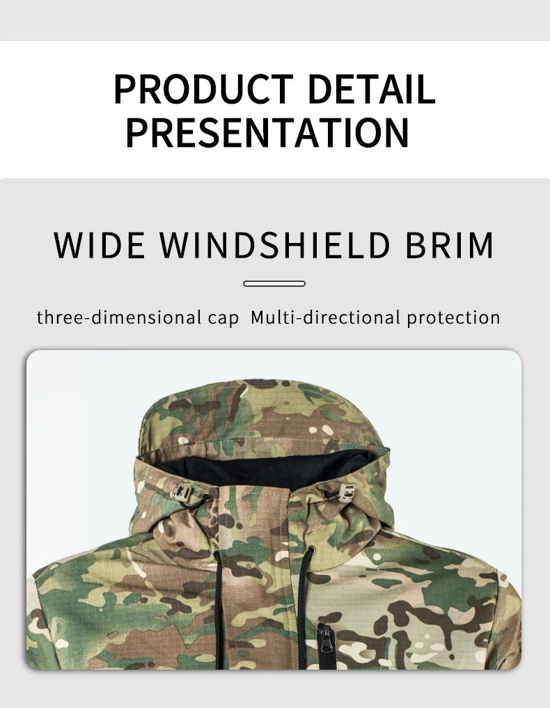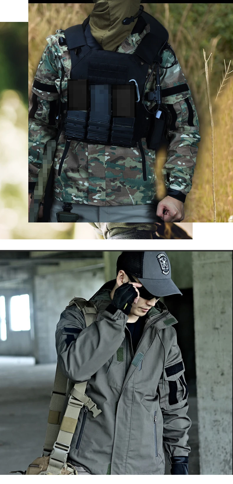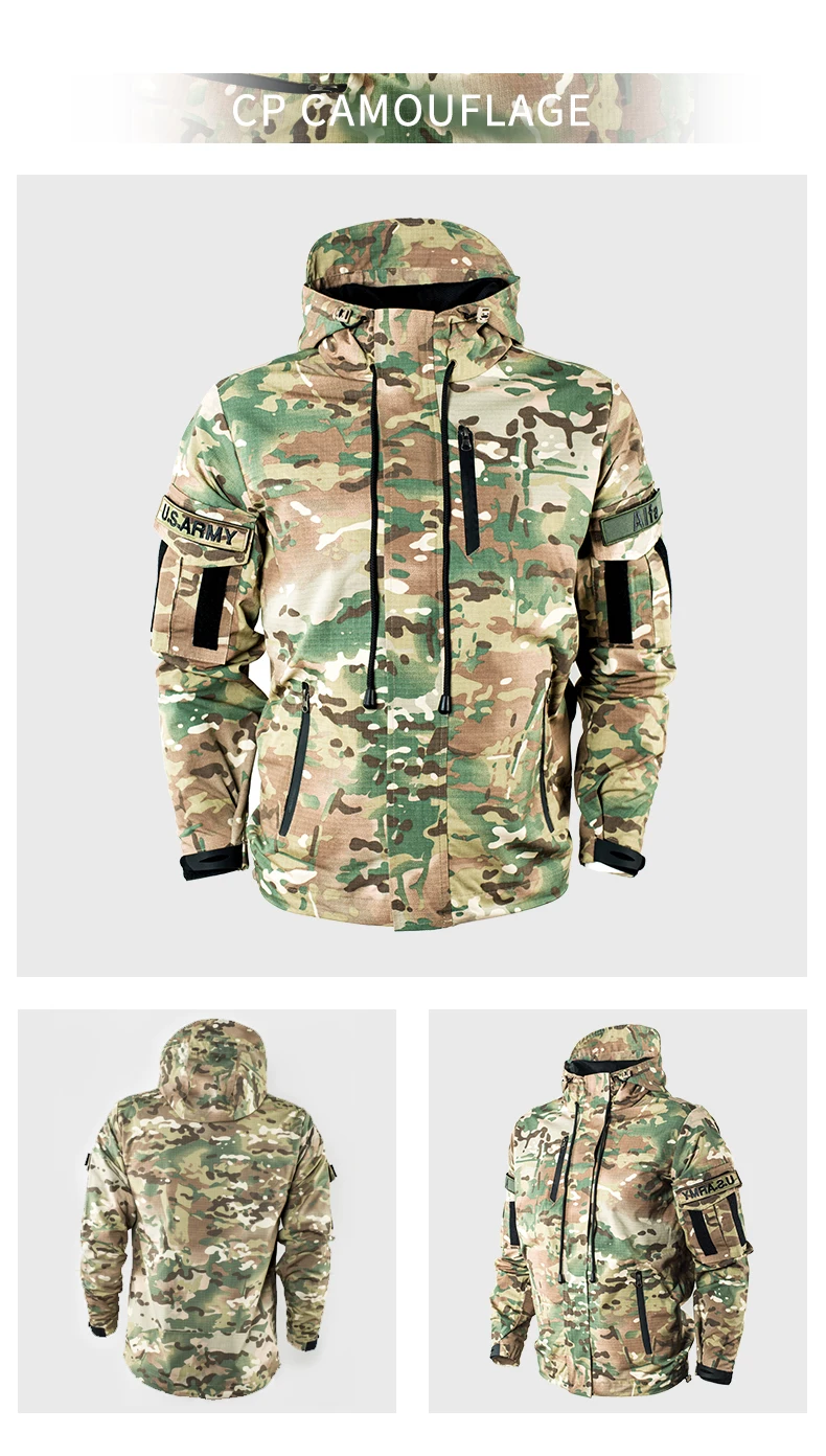 Chaqueta táctica de caza al aire libre para hombre, chaquetas de entrenamiento de camuflaje impermeables con múltiples bolsillos, abrigo largo con capucha a prueba de viento para senderismo
