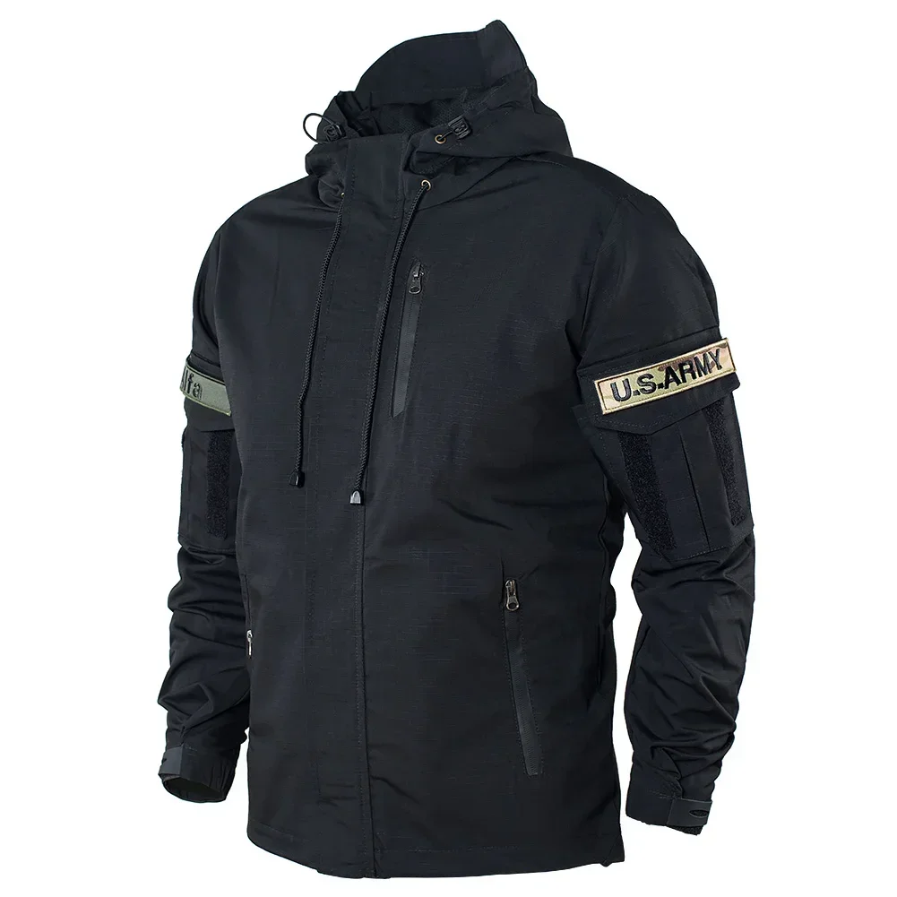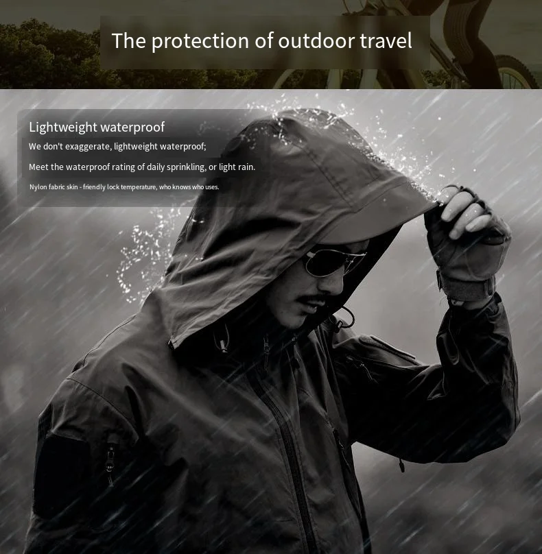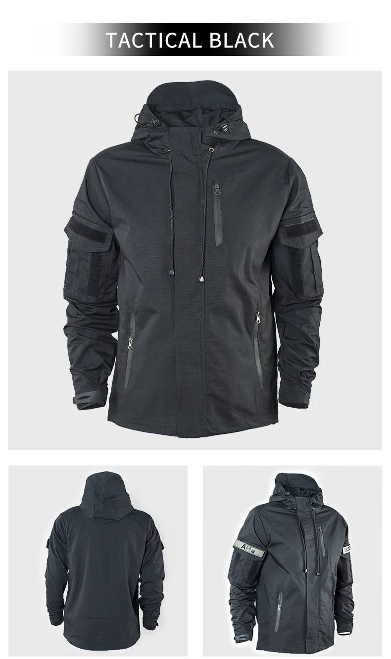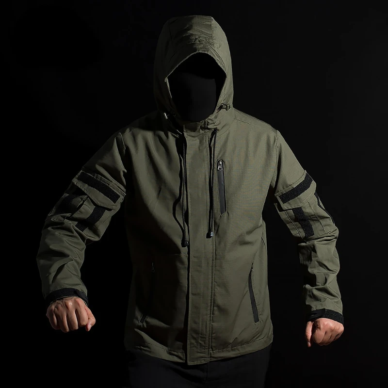 Chaqueta táctica de caza al aire libre para hombre, chaquetas de entrenamiento de camuflaje impermeables con múltiples bolsillos, abrigo largo con capucha a prueba de viento para senderismo