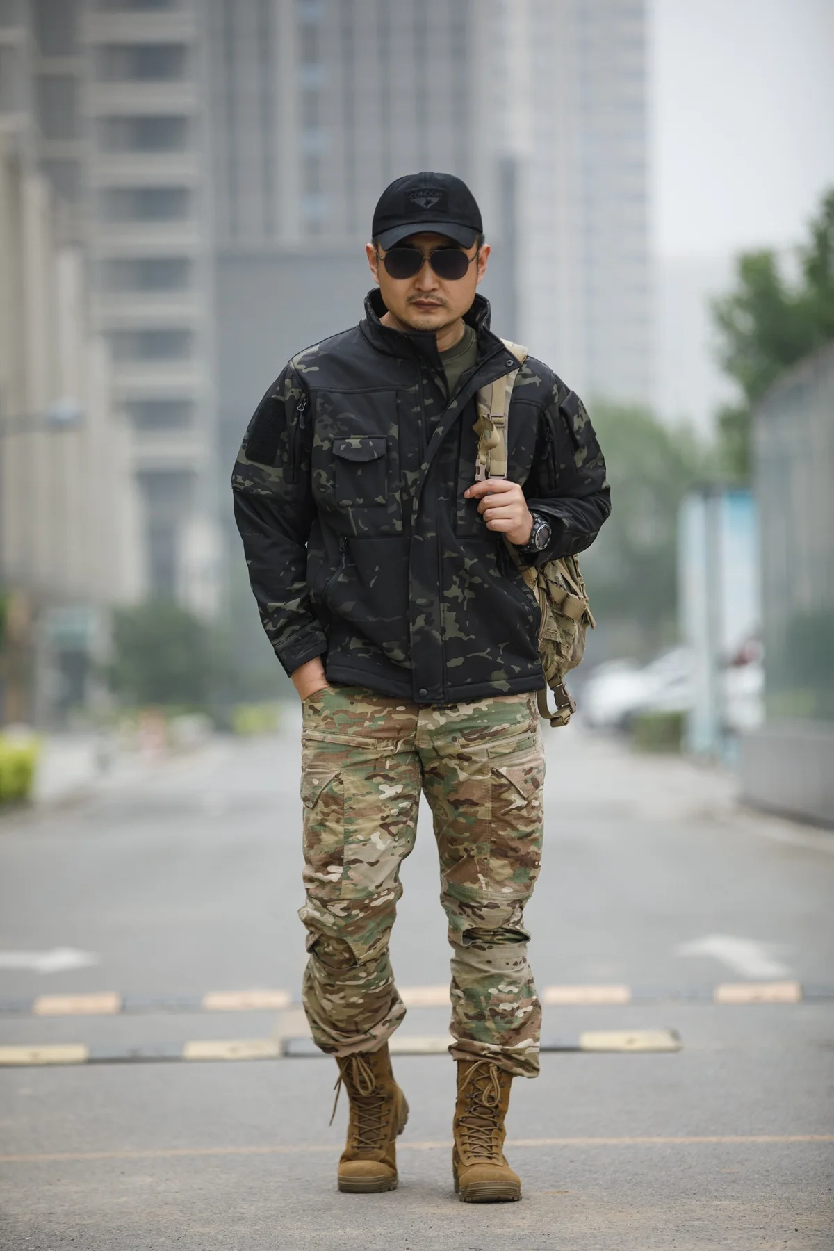 Chaqueta táctica de concha suave para hombre, impermeable, a prueba de viento, múltiples bolsillos, chaquetas de motocicleta, abrigos militares de carga para escalada al aire libre