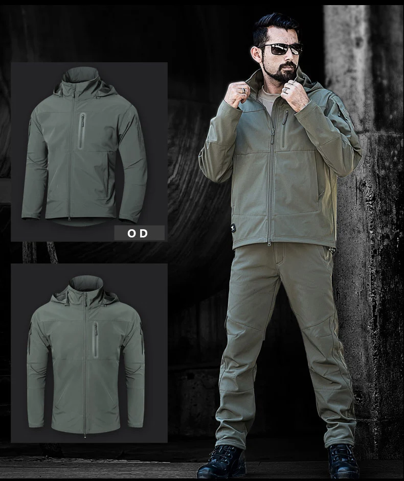 Chaqueta táctica para hombre, cortavientos con capucha, abrigo ligero impermeable para exteriores y otoño