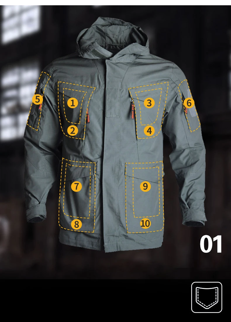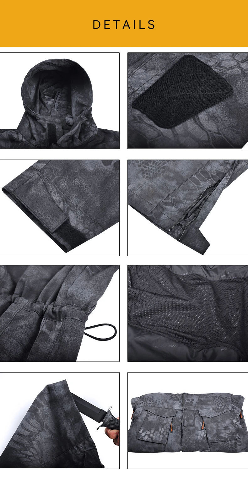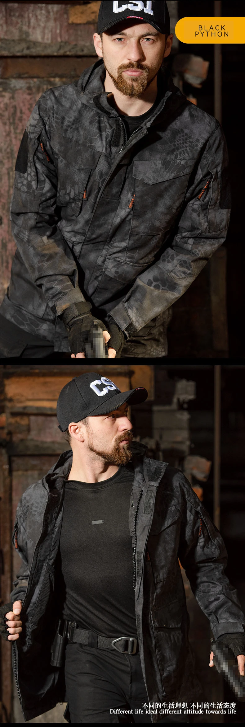 Chaqueta táctica impermeable para hombre, abrigo informal de camuflaje con múltiples bolsillos, rompevientos informal de invierno