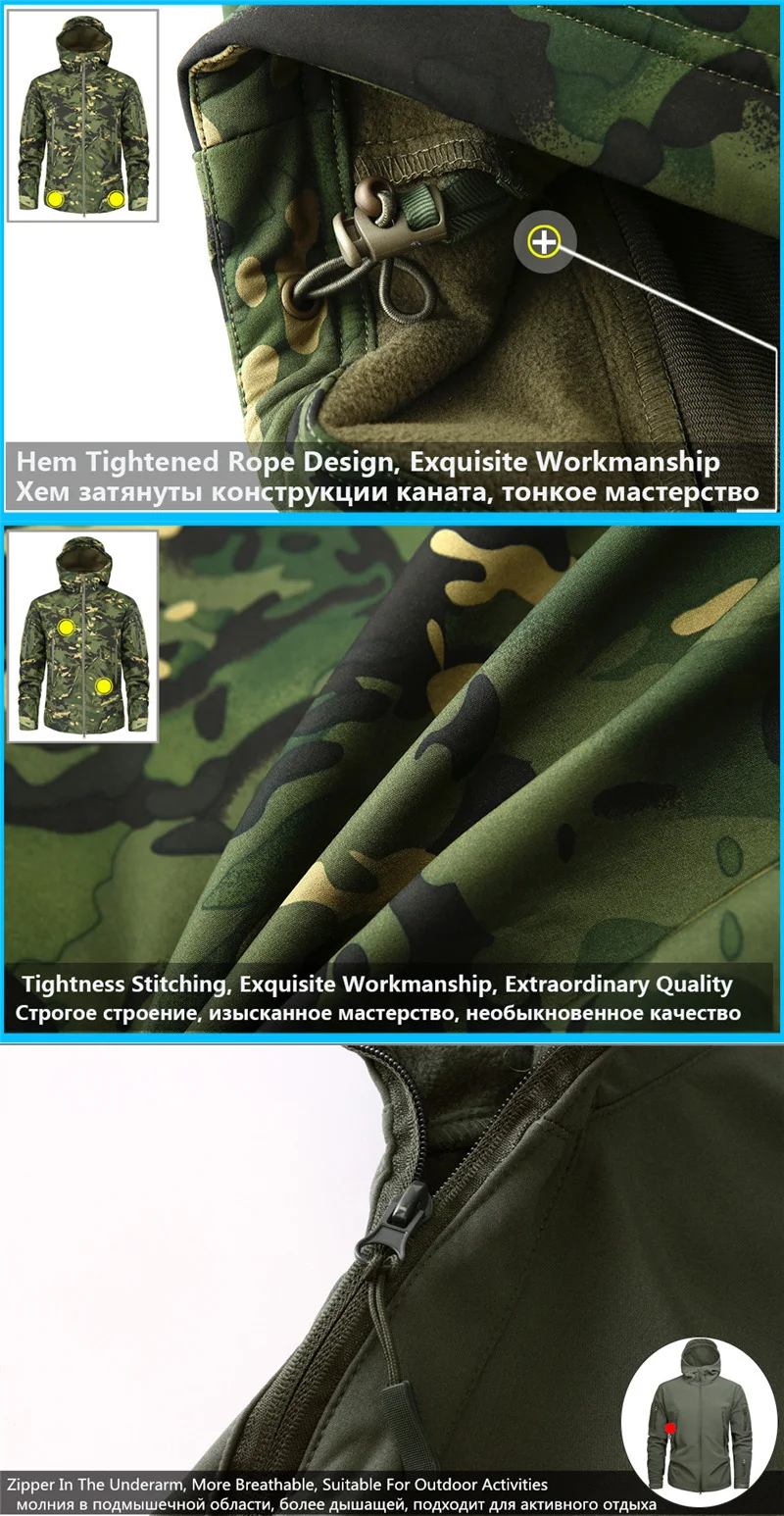 Chaqueta táctica de invierno para hombre, chaquetas de camuflaje, uniforme de esquí al aire libre, forro polar a prueba de viento, senderismo, Fuerza Aérea, ropa climatizada CP