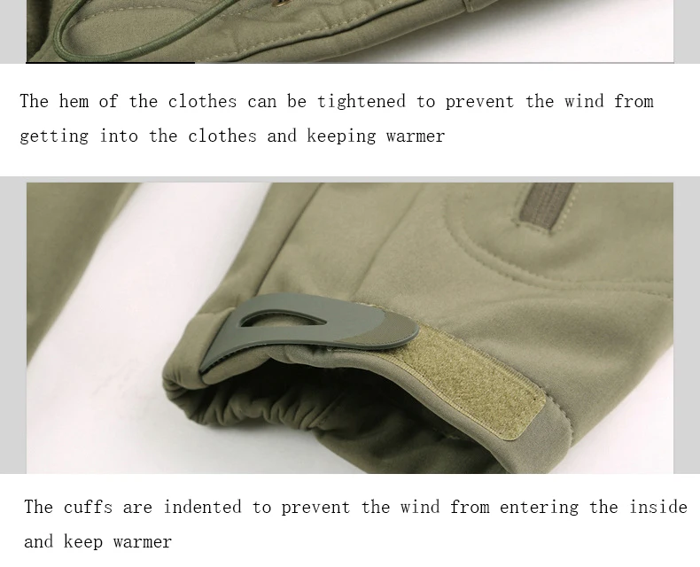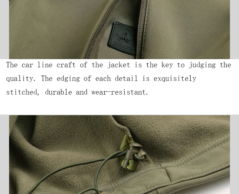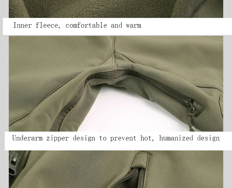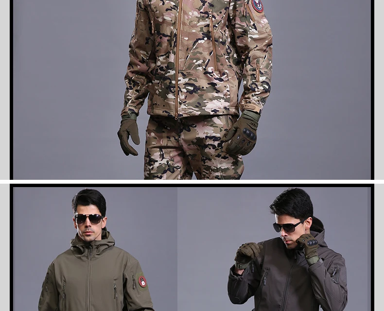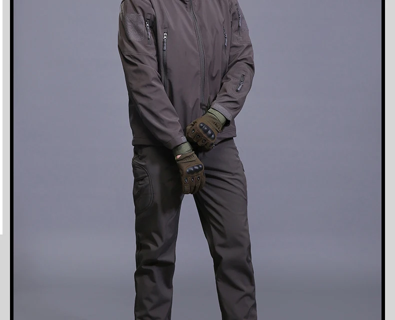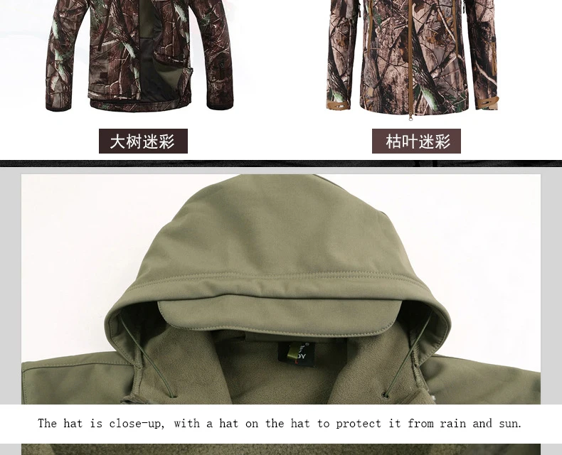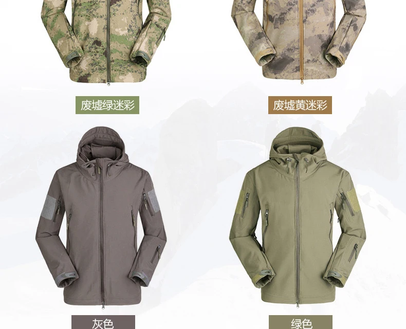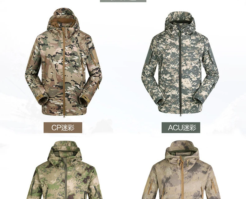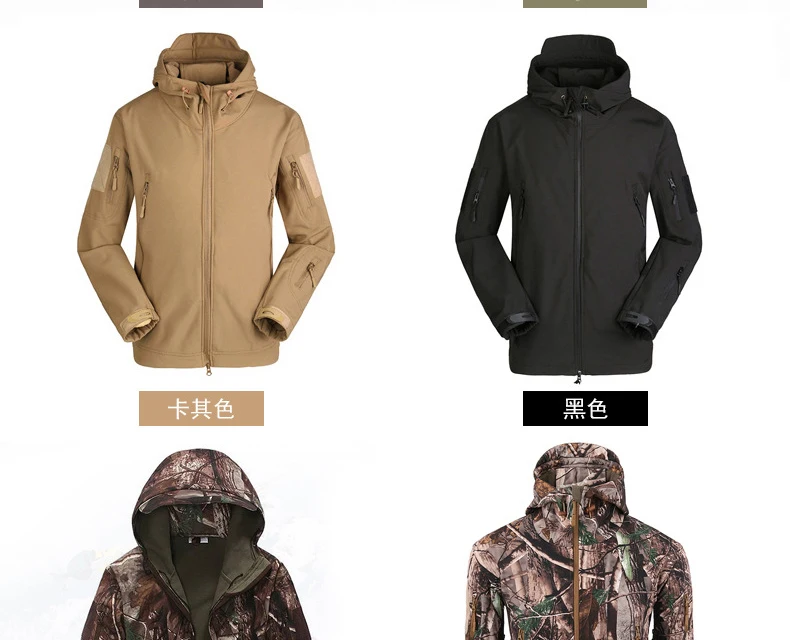 Product Name: Tactical shark skin soft shell jacketBrand: TONFLAT YATTISuitable for the season: winter spring autumnMain features: waterproof, windproof, breathable, etc.Material: soft shell fabric medium weight heavy fleece liningApplicable object: MaleSize model: S-XXXLColor Classification :Black Army Green Khaki Grey CP ACU Ruin Green Ruin Gray Big Tree CamouflageWeight: 950 grams (cassette + bag)Foreign trade weight: 960 grams (the jacket + bag + delivery bag)Product introduction: TONFLAT YATTI is fashionable, V4 is designed for outdoor sports, warm, waterproof, windproof, breathable multi-purpose soft shell jacket, 3 layers of composite fabric surface 100D4 elastic fabric middle layer waterproof and breathable PU (waterproof index 10000mm, breathable index 8000g/m2/d) inner layer composite cold-proof fine flannel, with windproof zipper,