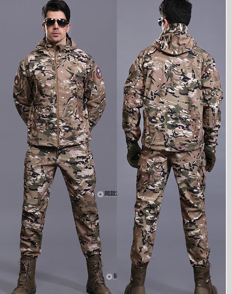 Chaqueta táctica militar multiusos de piel de tiburón para hombre, chaqueta polar de concha suave para caza al aire libre, chaqueta cálida impermeable a prueba de viento para combate