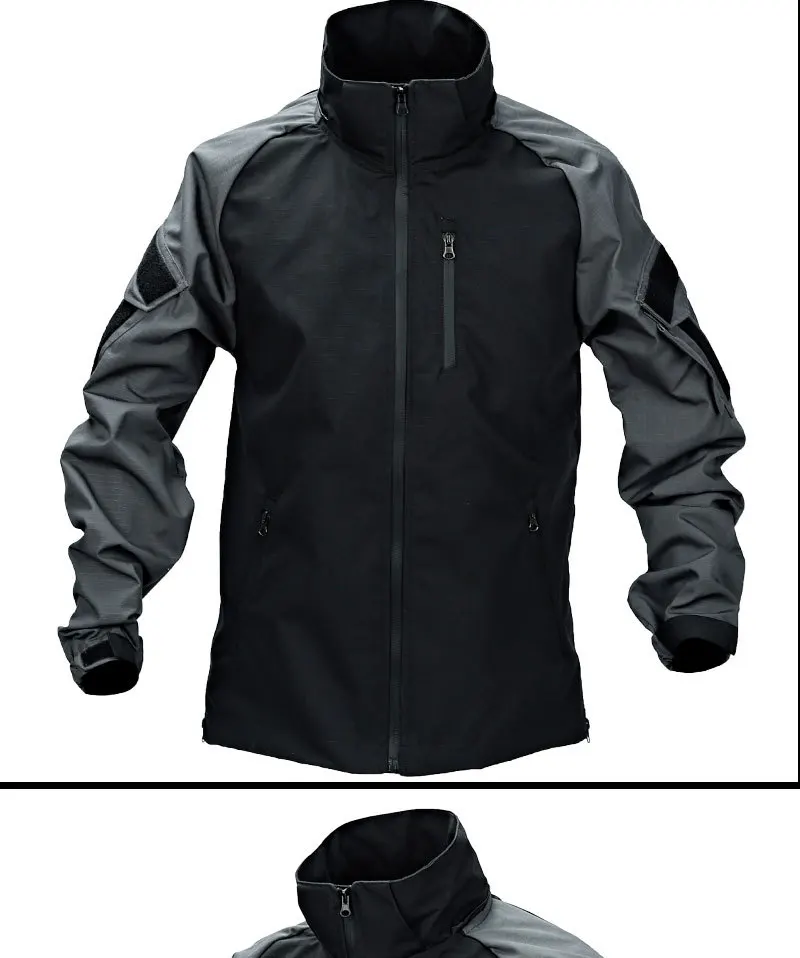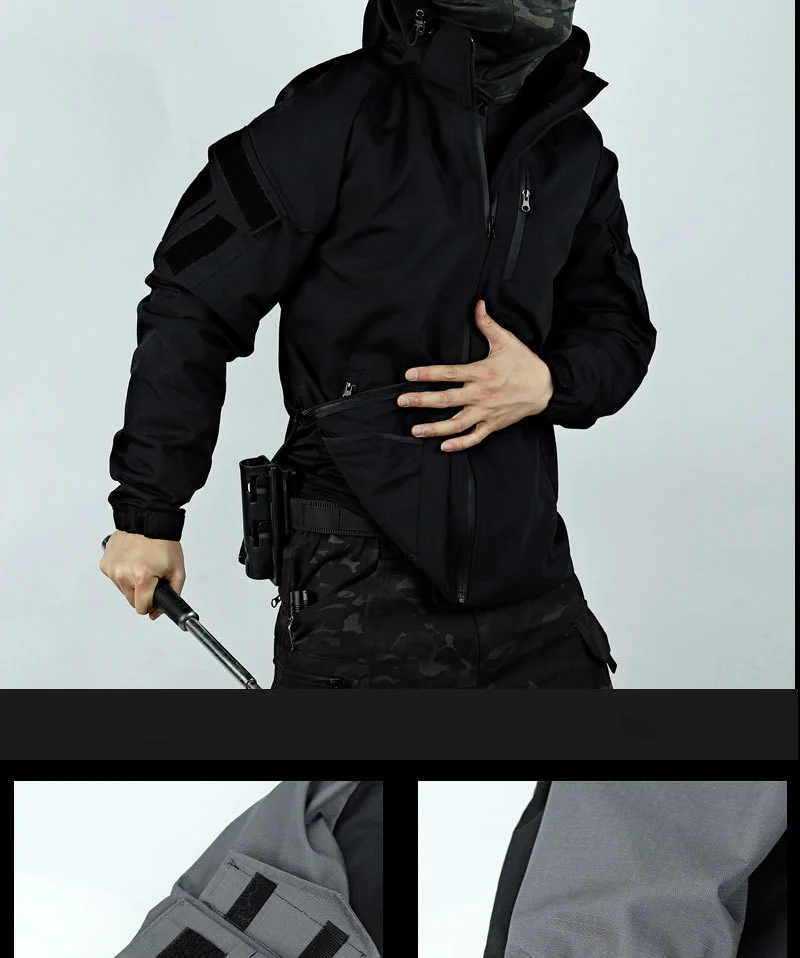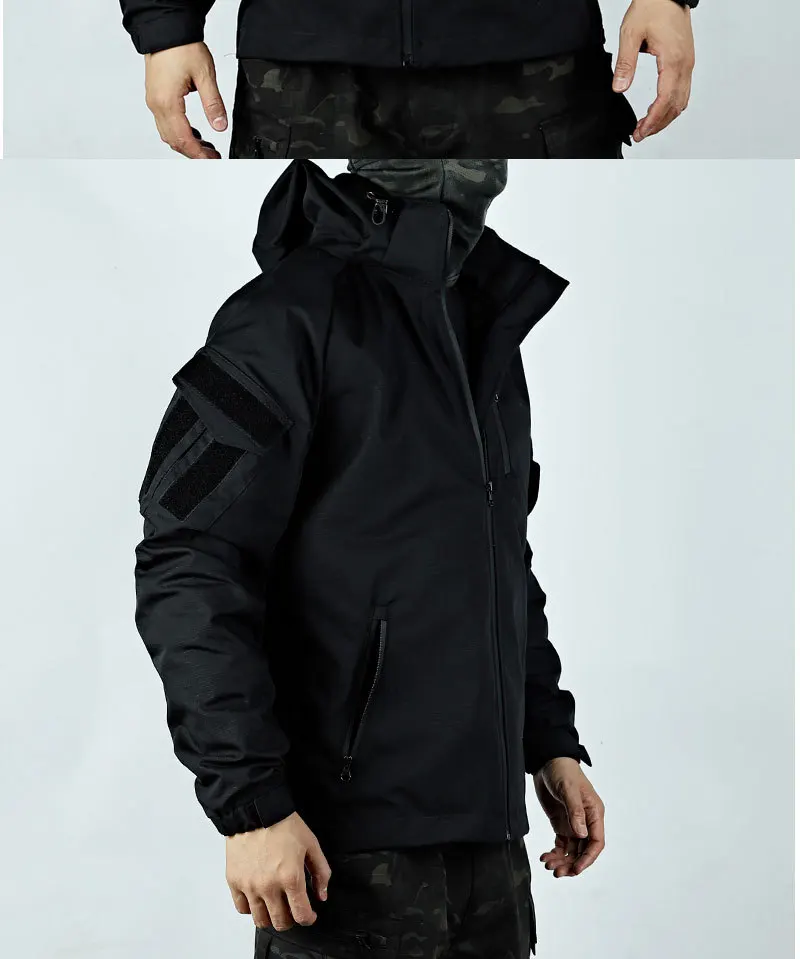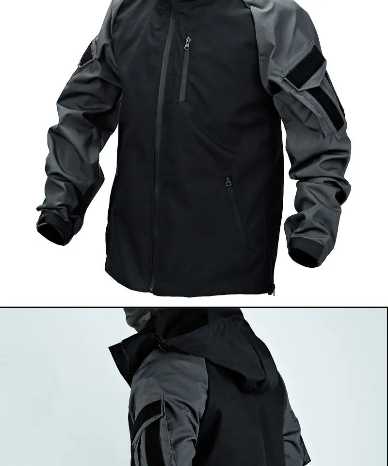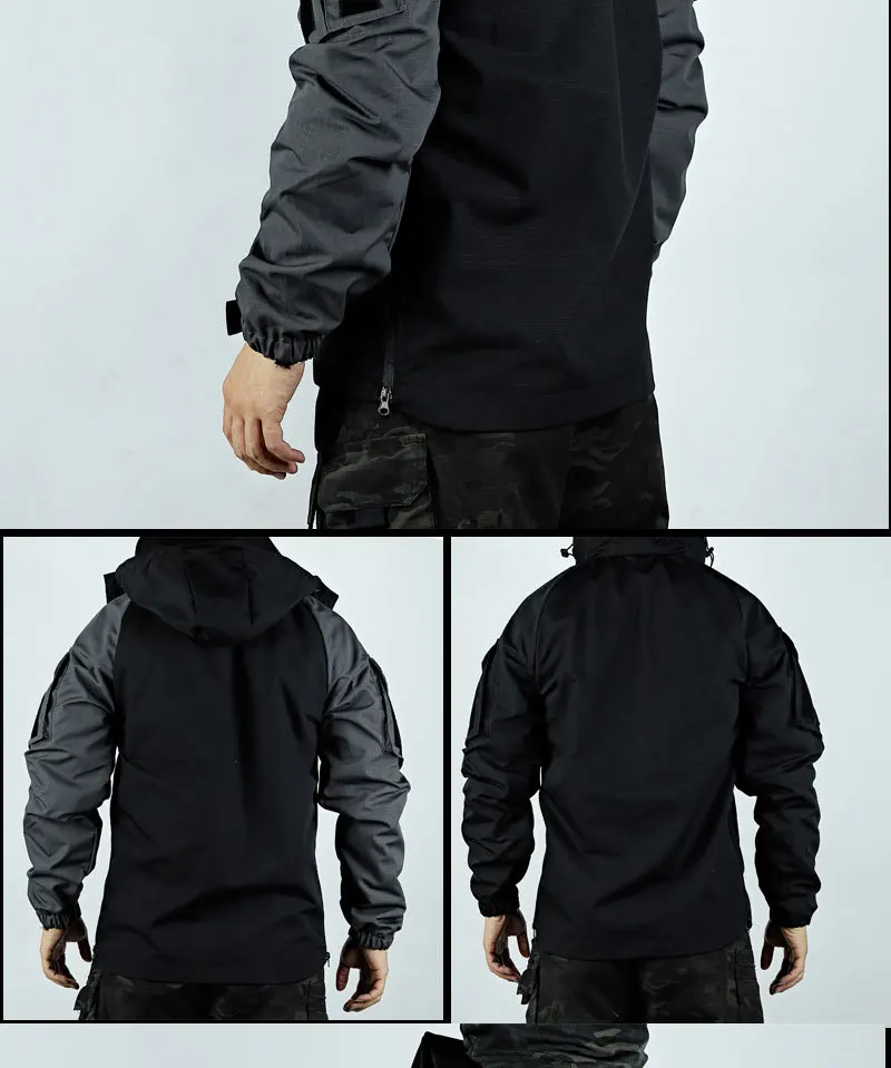 Uniforme funcional para exteriores, chaqueta táctica de piel de tiburón con múltiples bolsillos, chaqueta militar con capucha impermeable a prueba de viento para hombre