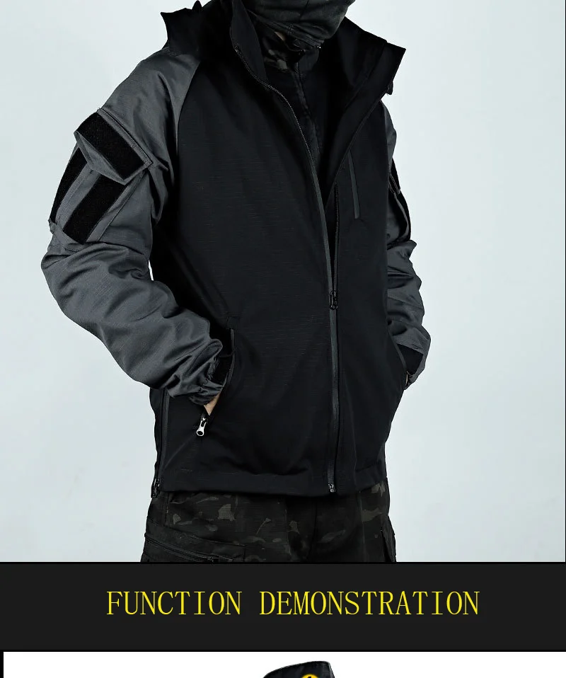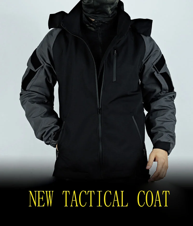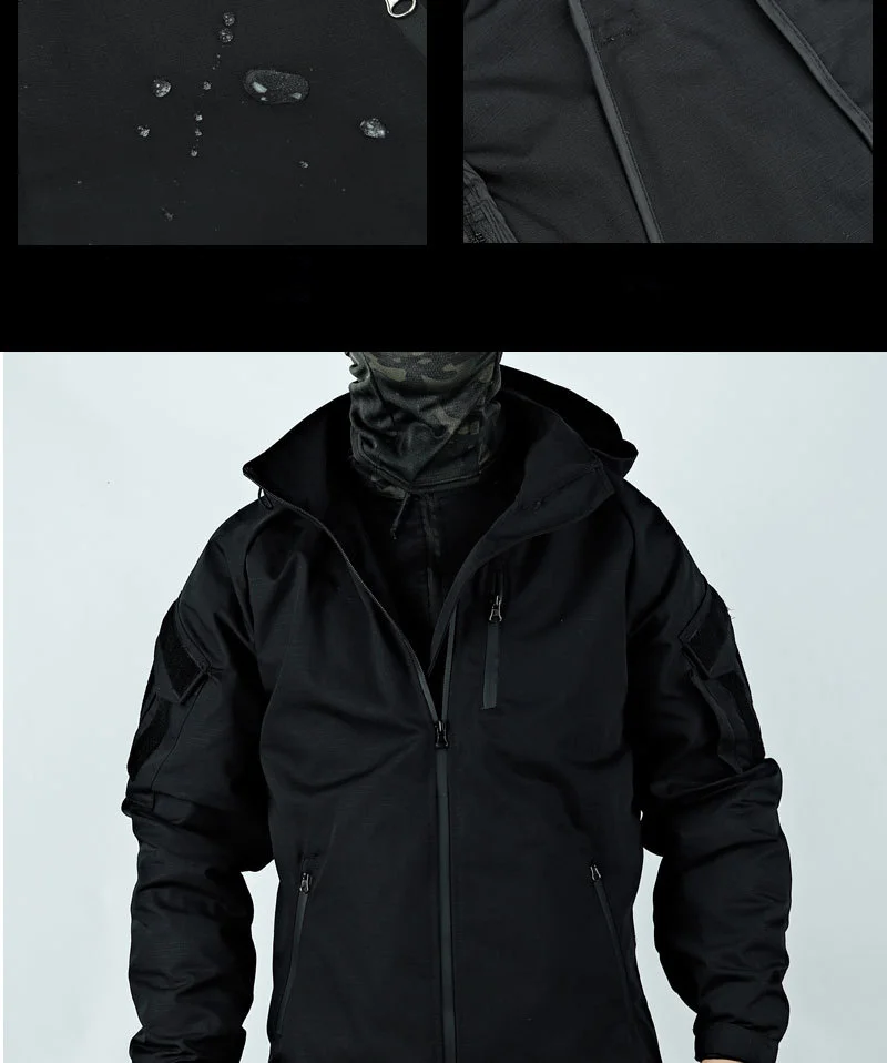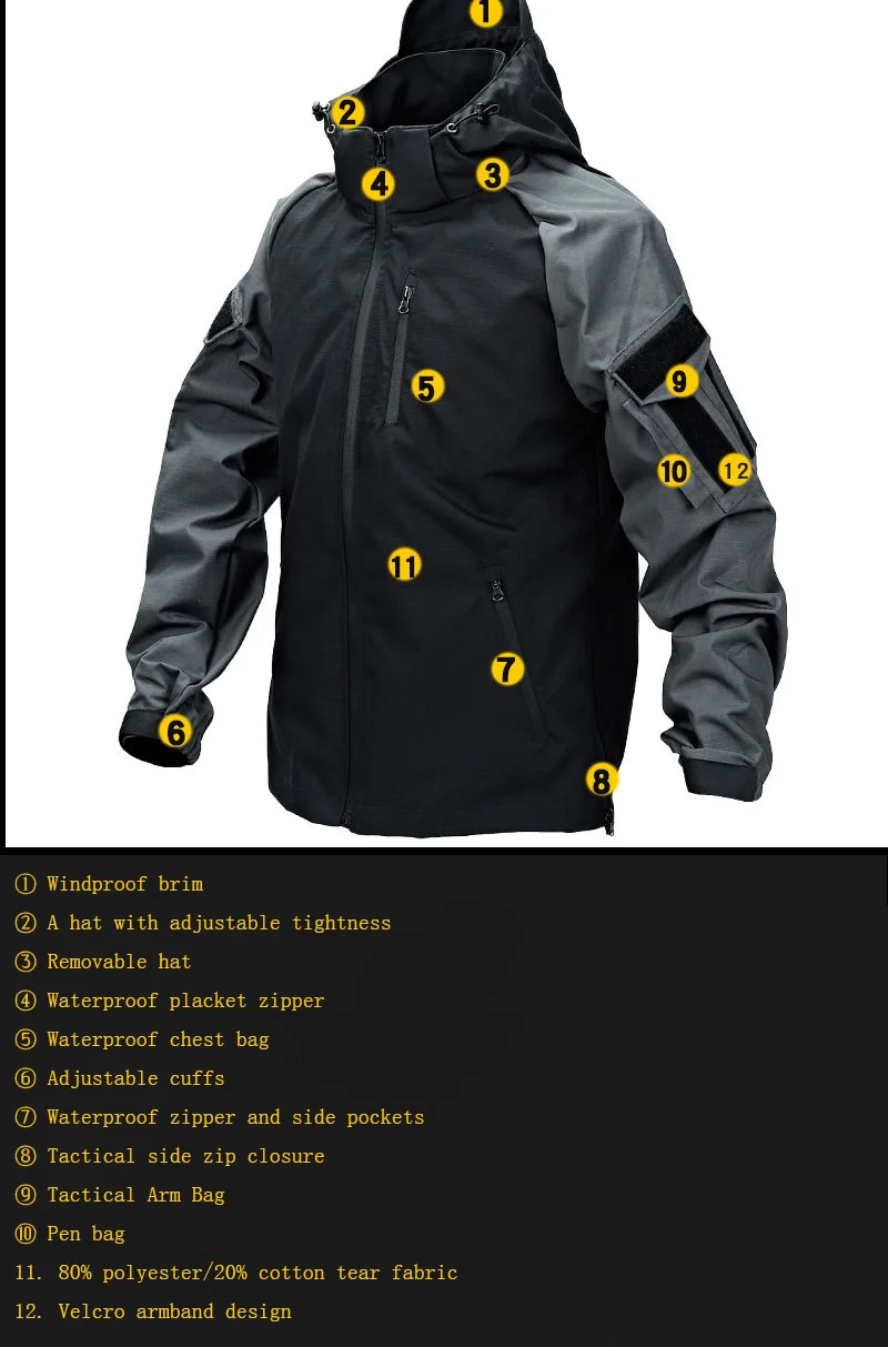 Uniforme funcional para exteriores, chaqueta táctica de piel de tiburón con múltiples bolsillos, chaqueta militar con capucha impermeable a prueba de viento para hombre