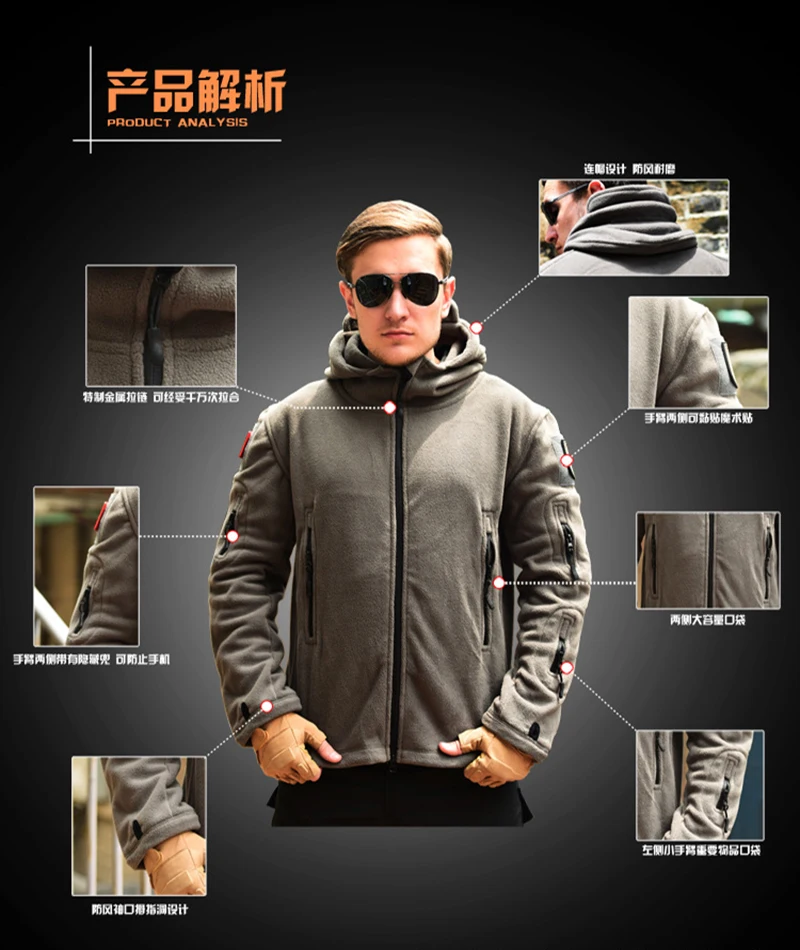 Chaqueta Softshell táctica Hombres Forro polar Chaqueta térmica a prueba de viento