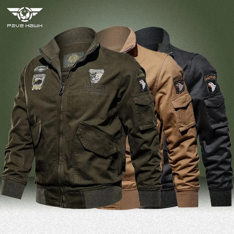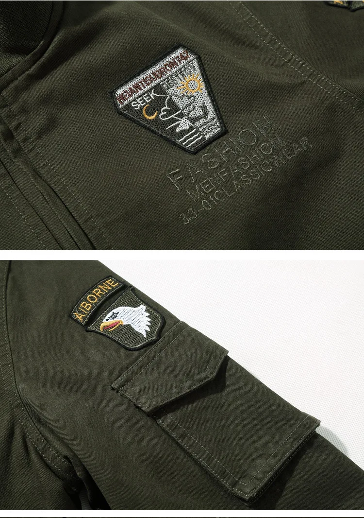 Chaquetas Bomber militares para hombre, abrigos tácticos bordados de cuello alto, chaquetas de carga de piloto de avión, otoño y primavera