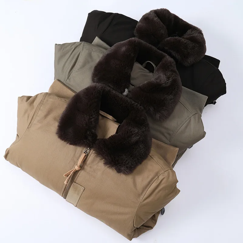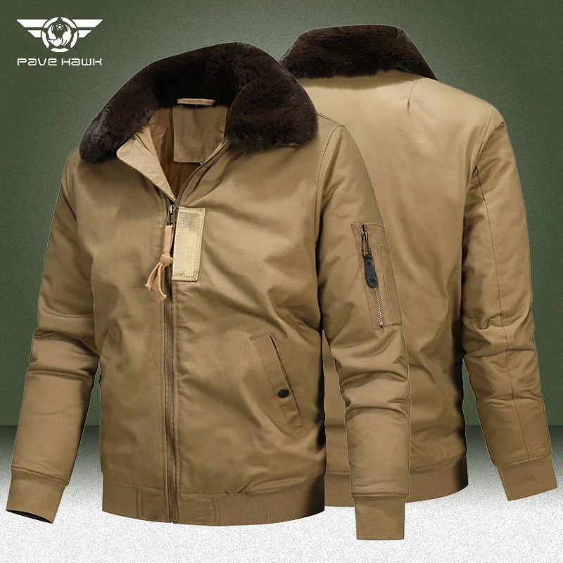 Chaquetas Bomber militares con múltiples bolsillos para hombre, Parkas gruesas y cálidas de carga, Cuello de piel, cortavientos de piloto, chaqueta táctica, Otoño e Invierno