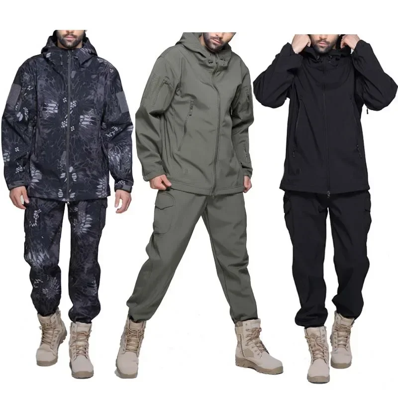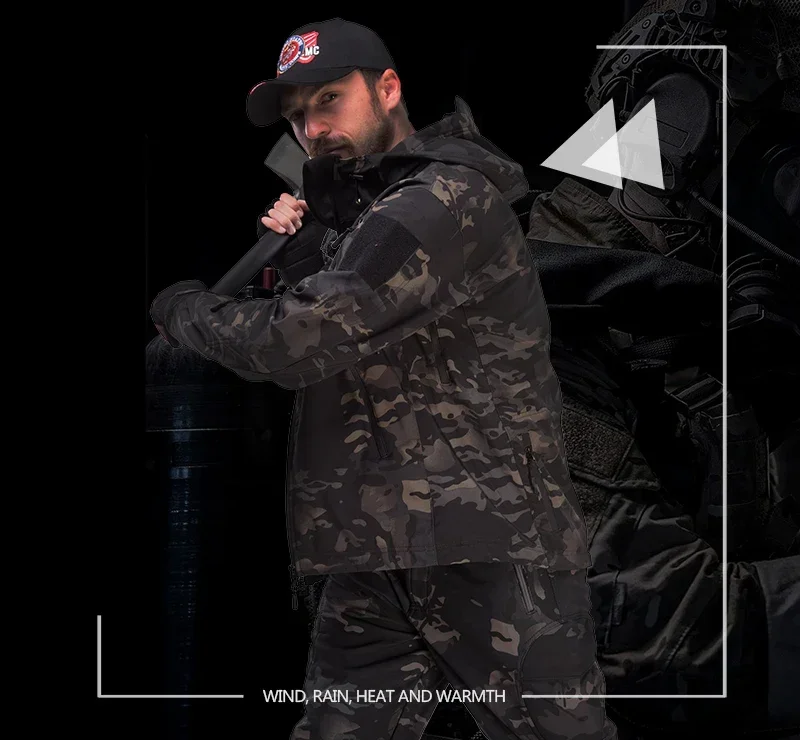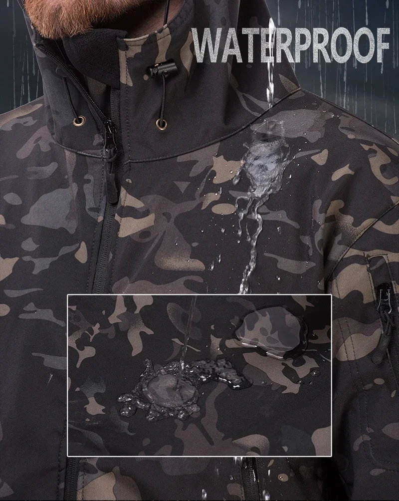 Chaquetas de caza Softshell para hombre, chaqueta táctica de combate, forro polar impermeable, ropa de invierno, abrigo cortavientos de esquí con capucha